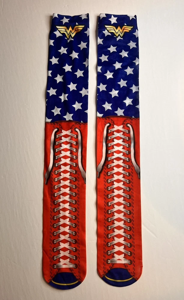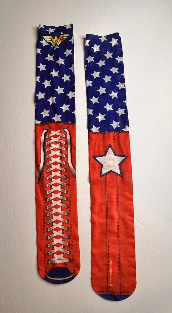 Womens DC Comics Wonder Woman Halloween Costume Stockings Red And Blue, new without tags size medium SKU(A185)