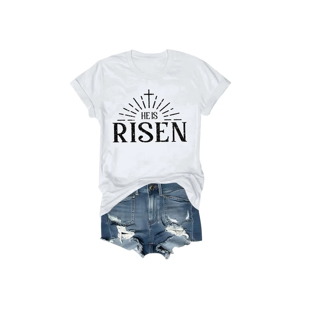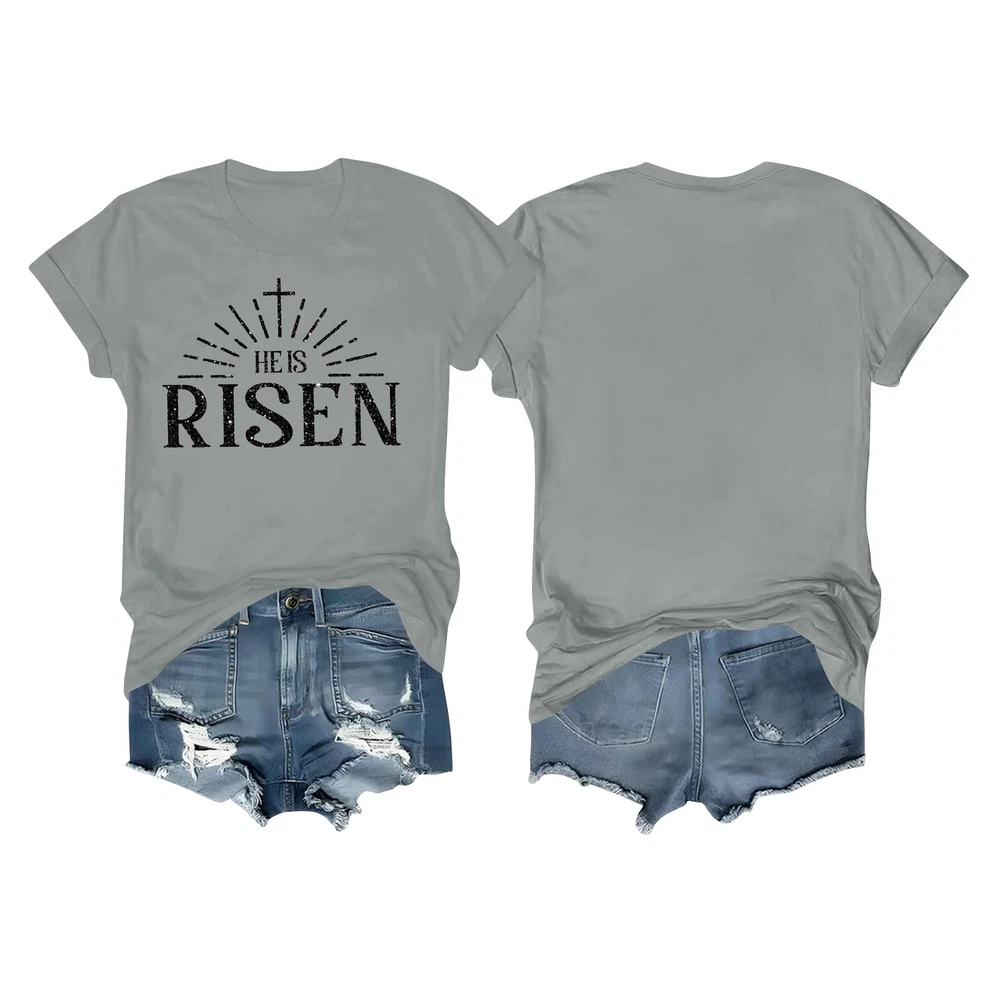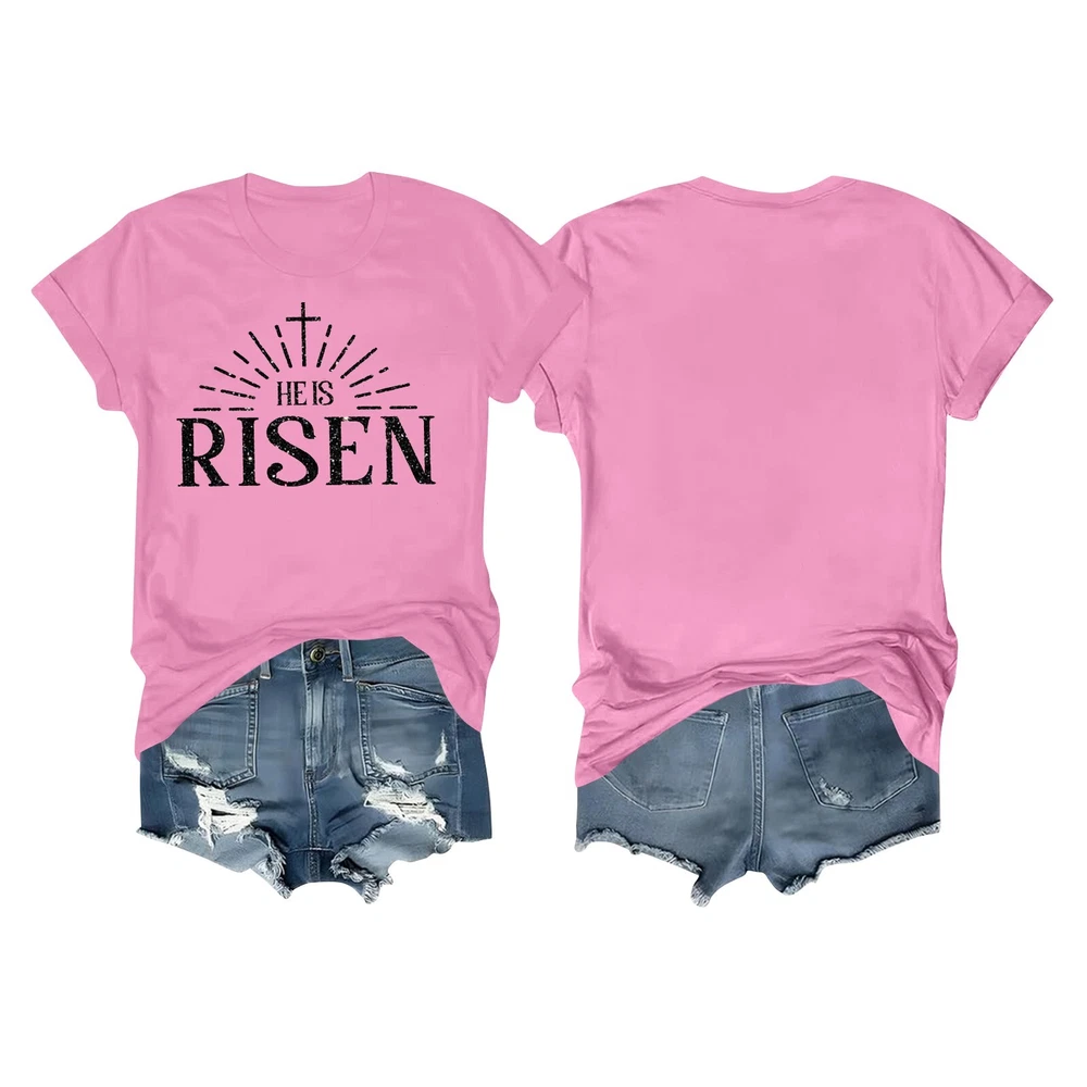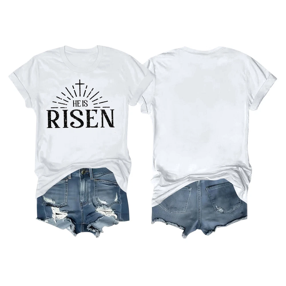 Women's Daily Holiday Printed Short Sleeve Easter Short Sleeve Round Neck Retro Short Sleeve Summer Casual Tops Features : Polyester,Spandex Women's Fashion Short Sleeve Tunics Casual Tops Summer Short Sleeve T Shirt For Women Suitable for summer,leisure, travel, daily life, party, club anywhere It's so easy to pair it with jeans, shorts, or jeg gings for a stylish look this season! Product information: Season:Autumn/Spring/Winter/Summer Gender:Womens Occasion:Daily Style:Casual,Fashion Fit:Fits ture to size Thickness:Standard How to wash:Hand wash Cold,Hang or Line Dry What you get:1 PC Women Tops Size Bust Shoulder Sleeve Length S 96cm/37.80'' 40cm/15.75'' 18cm/7.09'' 67cm/26.38'' M 102cm/40.16'' 41.5cm/16.34'' 19cm/7.48'' 68cm/26.77'' L 108cm/42.52'' 43cm/16.93'' 20cm/7.87'' 69cm/27.17'' XL 114cm/44.88'' 45cm/17.72'' 21cm/8.27'' 71cm/27.95'' XXL 122cm/48.03'' 47cm/18.50'' 22cm/8.66'' 73cm/28.74'' XXXL 130cm/51.18'' 49cm/19.29'' 23cm/9.06'' 75cm/29.53'' Size:S Bust:96cm/37.80'' Shoulder:40cm/15.75'' Sleeve:18cm/7.09'' Length:67cm/26.38'' Size:M Bust:102cm/40.16'' Shoulder:41.5cm/16.34'' Sleeve:19cm/7.48'' Length:68cm/26.77'' Size:L Bust:108cm/42.52'' Shoulder:43cm/16.93'' Sleeve:20cm/7.87'' Length:69cm/27.17'' Size:XL Bust:114cm/44.88'' Shoulder:45cm/17.72'' Sleeve:21cm/8.27'' Length:71cm/27.95'' Size:XXL Bust:122cm/48.03'' Shoulder:47cm/18.50'' Sleeve:22cm/8.66'' Length:73cm/28.74'' Size:XXXL Bust:130cm/51.18'' Shoulder:49cm/19.29'' Sleeve:23cm/9.06'' Length:75cm/29.53''