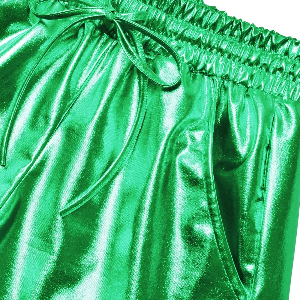 Side pockets with stitched detail to the front, hot dolphin hem stylish. Loose fit with drawstring band waist,you could adjust the waist size based on your need Occasion: yoga,disco,workout,exercise,fitness,dance,clubs,cosplay,hallowen,carnival,christmas party etc. Sparkly fabric, very shiny and well sewn, great texture and look fantastic Skin-friendly, breathable, lightweight, soft and comfotrable touch. This shiny short pants can be matched with Boots, High heels or Flat shoes, will just make you sexxy and fashion