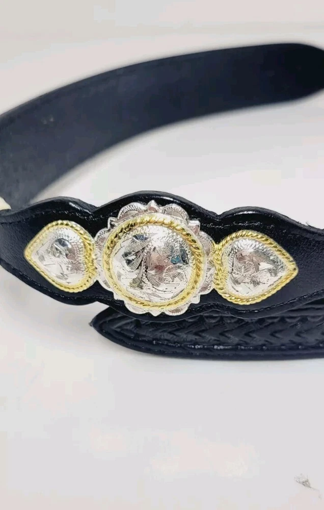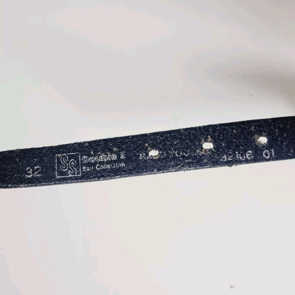 Womens Double S Black Genuine Leather Belt Silver & Gold Tone Plated S 32