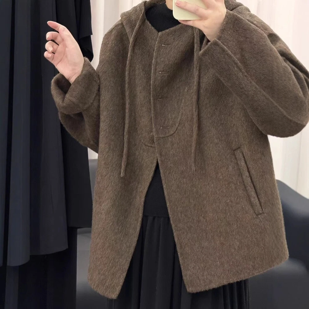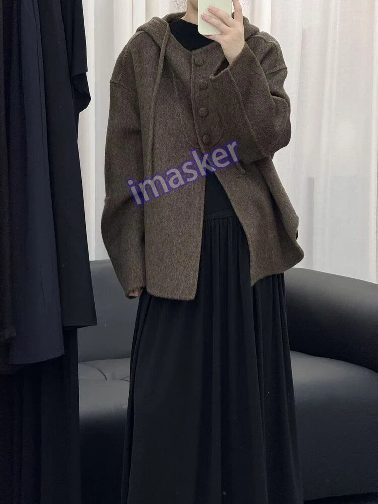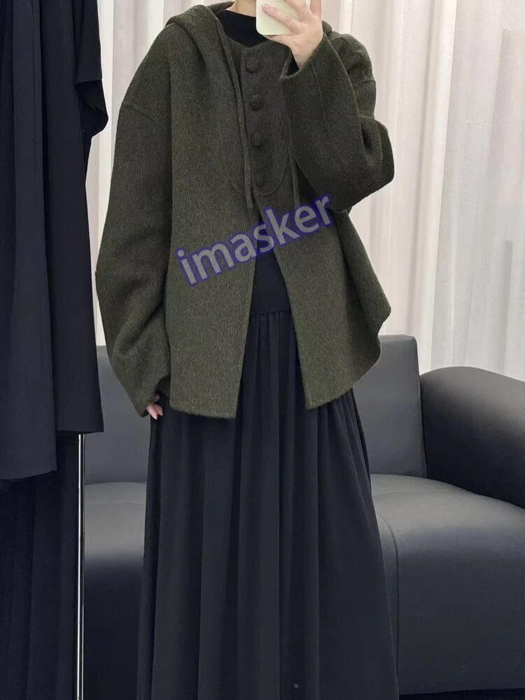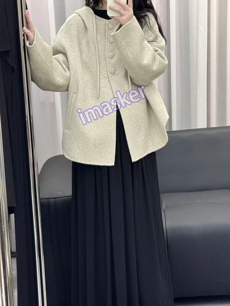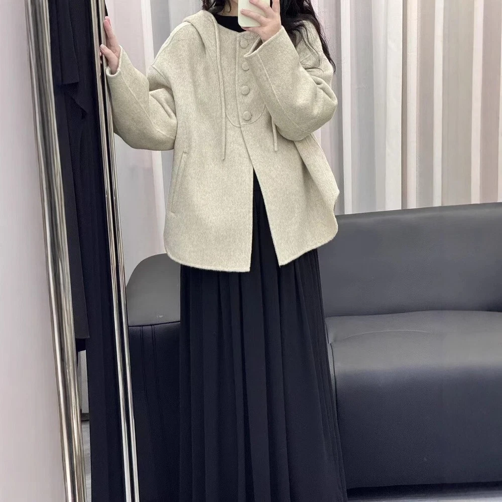 Womens Double-sided 100% Wool Single Breasted Woolen Coats Loose Jackets Sz