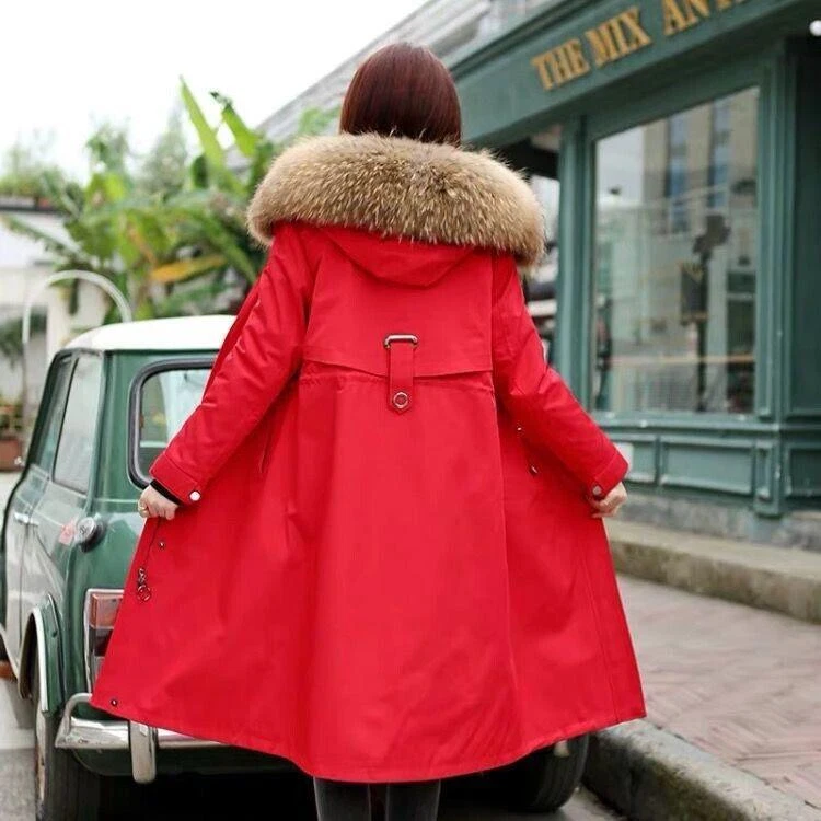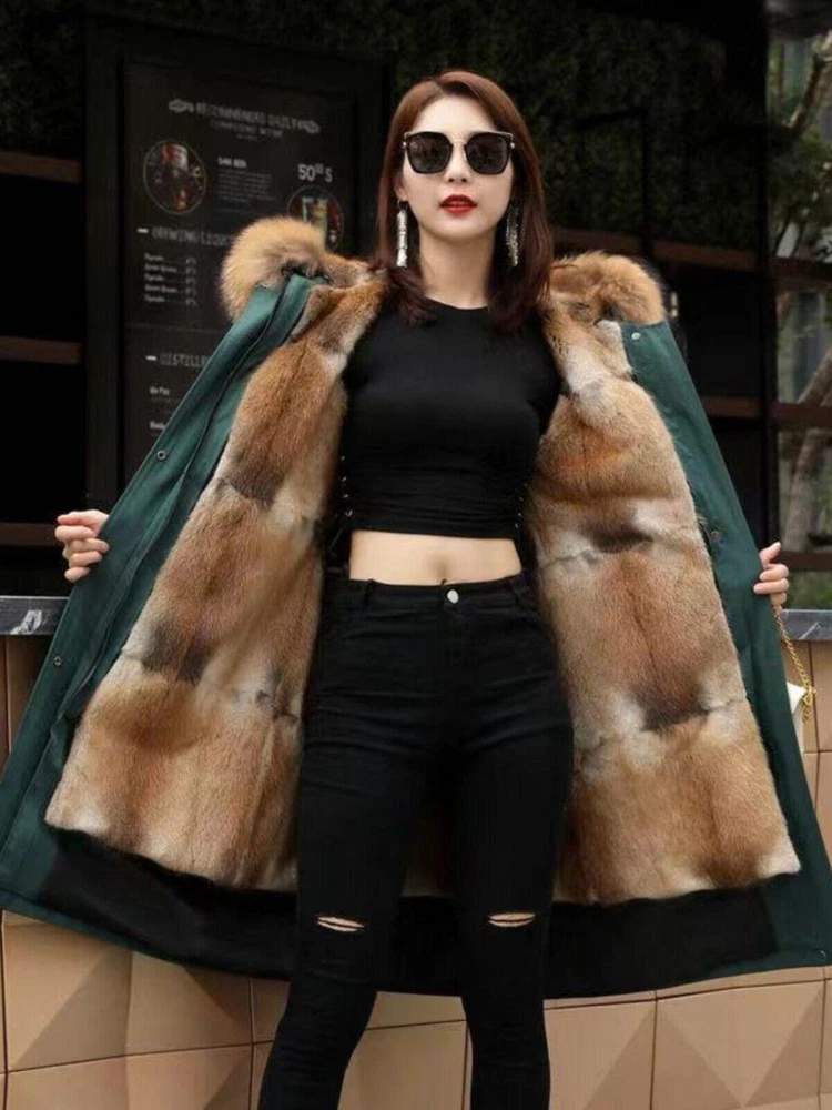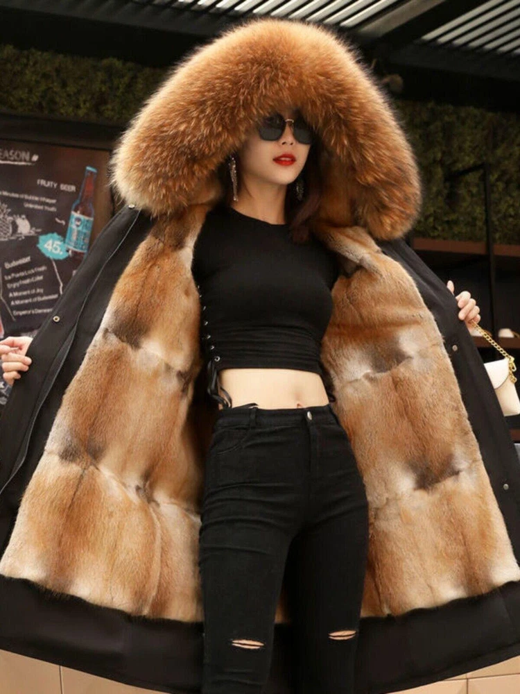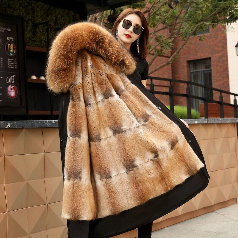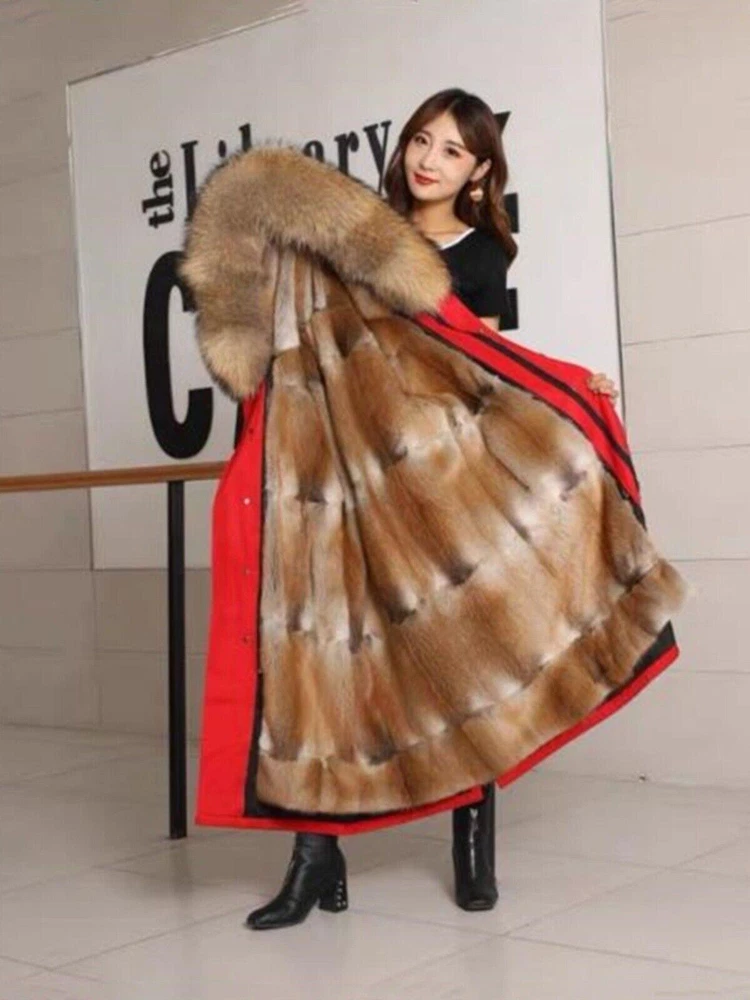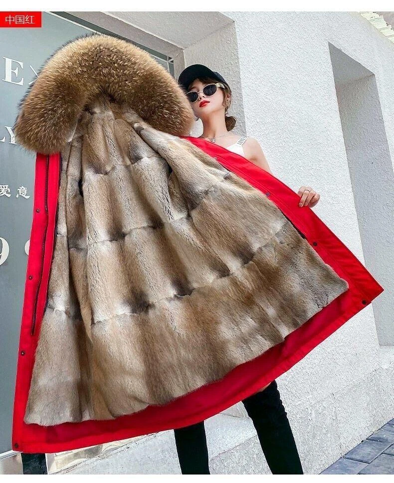 Women's Elegant Long Hooded Faux Mink Parka with Luxury Lining