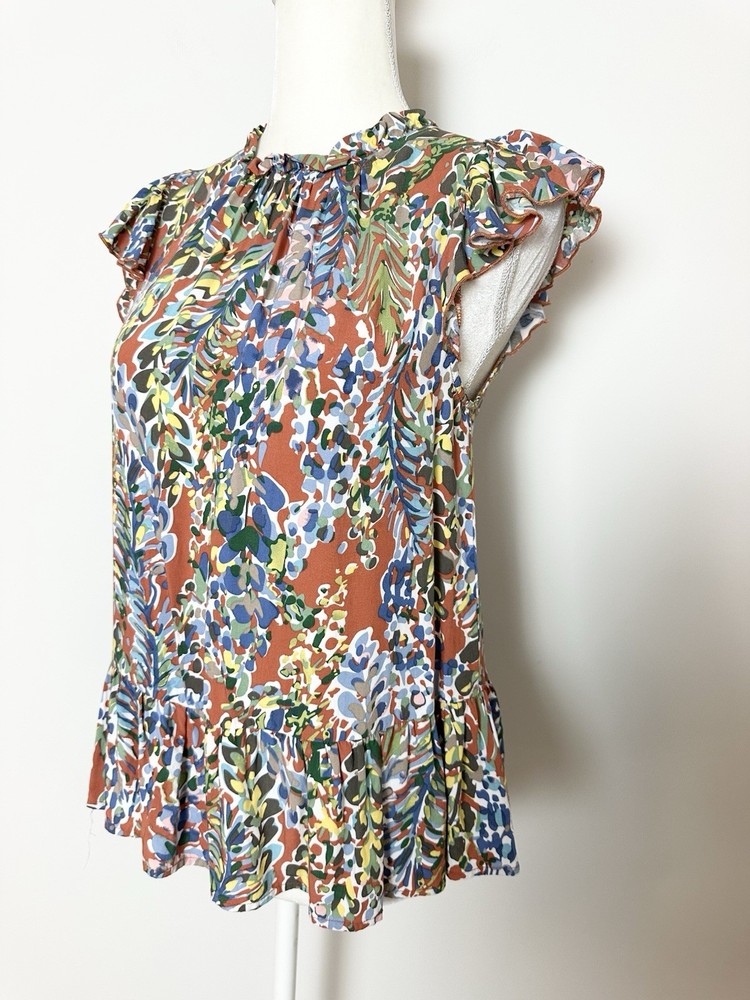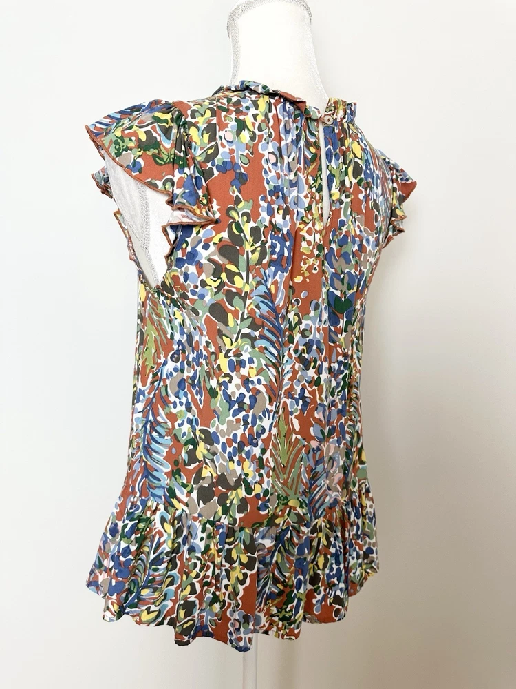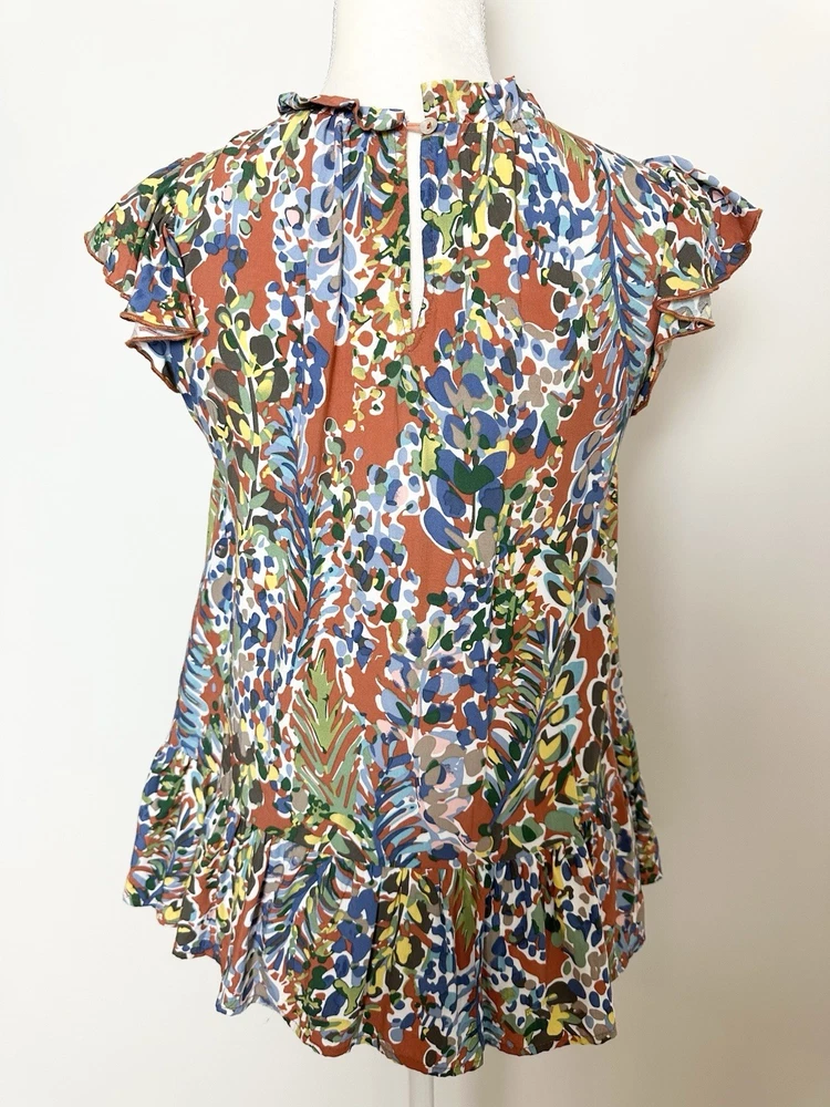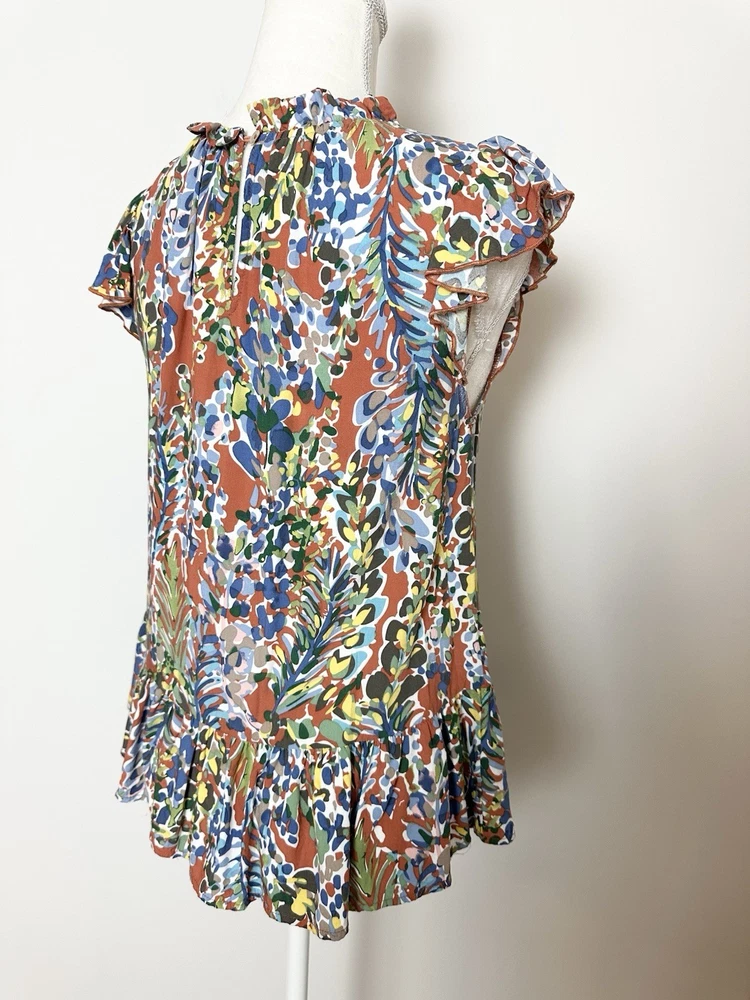 Item Details: Women's Tunic Blouse Size S Multicolored Floral Pattern Ruffled Round Neck Keyhole In Back Ruffle Hem Short Flutter Sleeves Pleated 100% Rayon Machine Washable Excellent Condition! Measurements are Approximate: Armpit to armpit measures 17.5" Shoulder to hem measures 23" Please see photos as they are part of the description. Please feel free to message me with any questions. Thank you! For more great items visit our store at https://www.ebay.com/str/bcstylehouse