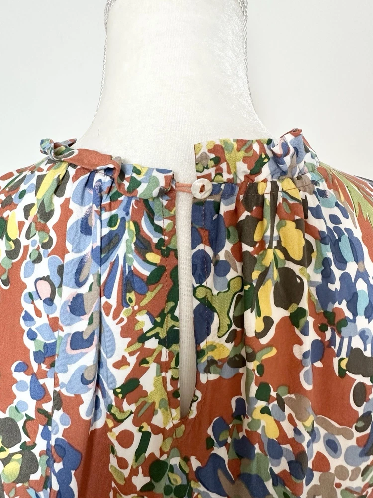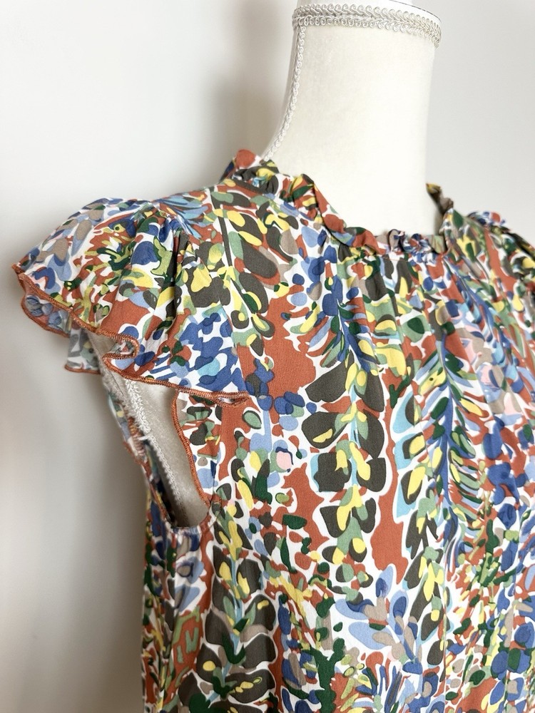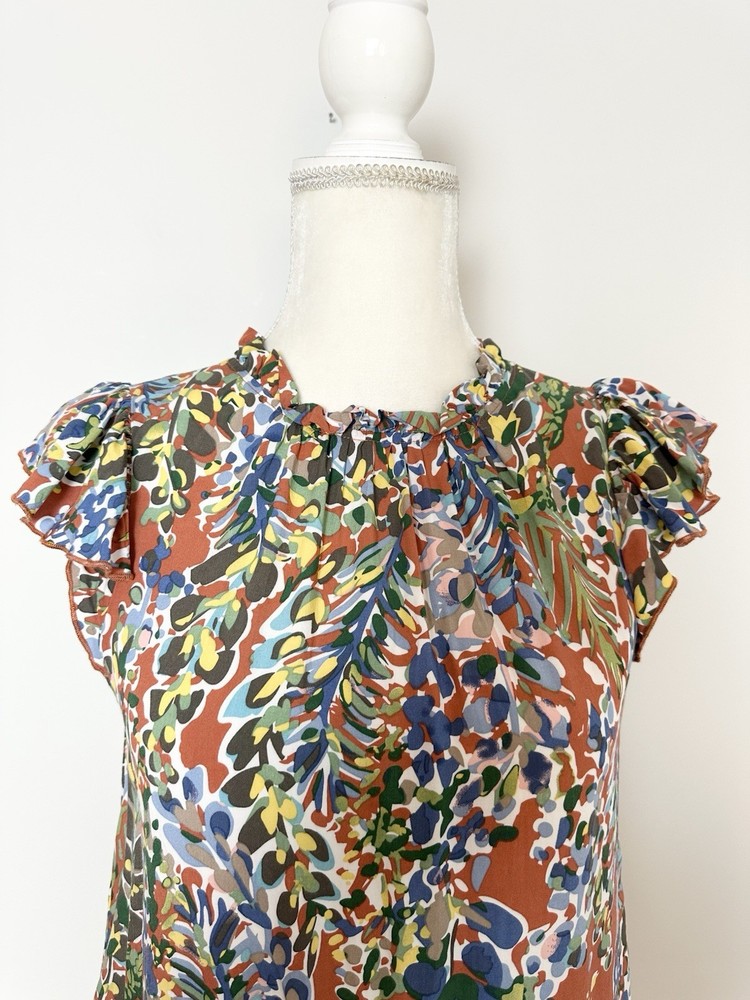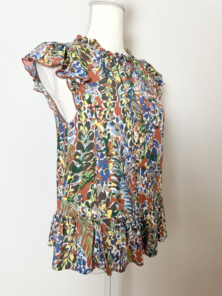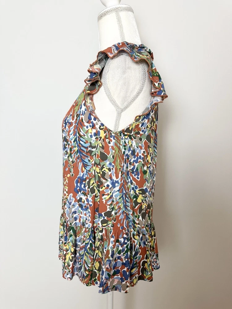 Item Details: Women's Tunic Blouse Size S Multicolored Floral Pattern Ruffled Round Neck Keyhole In Back Ruffle Hem Short Flutter Sleeves Pleated 100% Rayon Machine Washable Excellent Condition! Measurements are Approximate: Armpit to armpit measures 17.5" Shoulder to hem measures 23" Please see photos as they are part of the description. Please feel free to message me with any questions. Thank you! For more great items visit our store at https://www.ebay.com/str/bcstylehouse