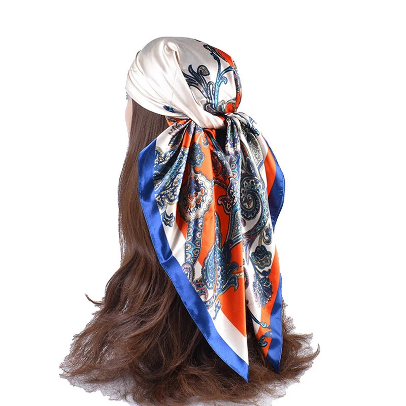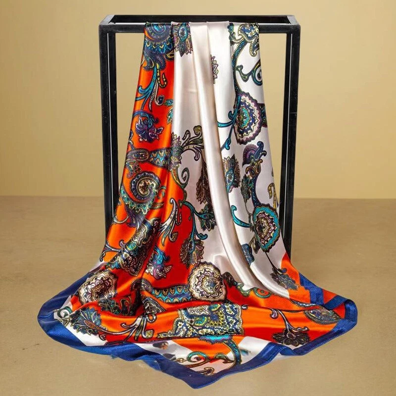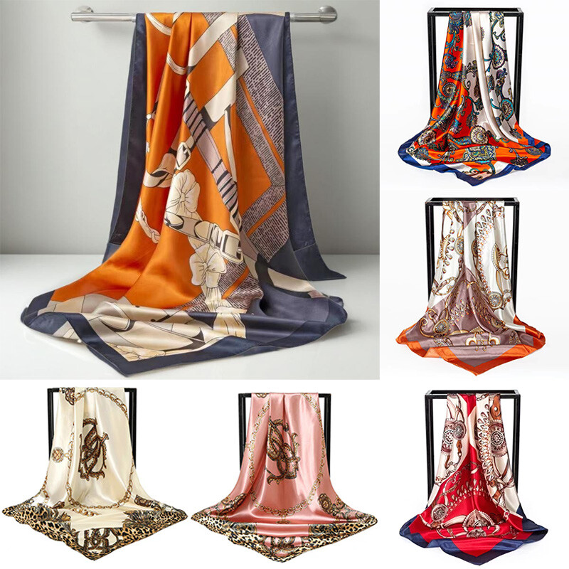 Women’s Floral Silk Satin Scarf Square Shawl Hijab Headwrap Smooth Elegant