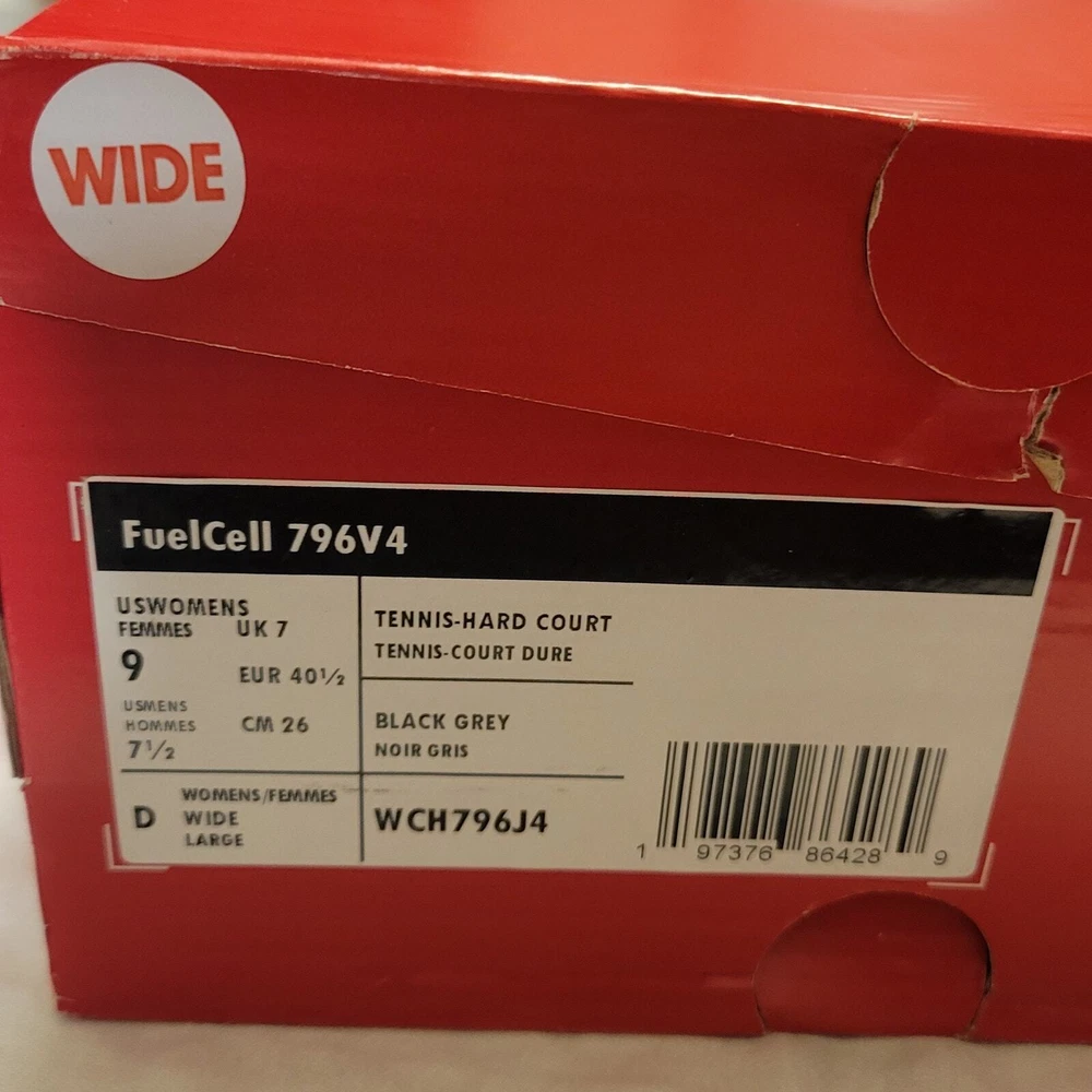 New Balance FuelCell Tennis Hard Court Shoes Model 796v4 Women's Tennis Shoes Black, Silver, Purple Size 9 Wide Width D Breathable mesh upper level for lightweight protection and ventilation. FUELCELL midsole foam creates a soft and very responsive ride on the tennis court. Oversized N logo Branding on both sides of shoes NDure upper technology designed for superior durability NDurance rubber outsole technology has superior durability in high-wear areas. Lace up Round Toe These are new in box. MSRP is $90.00