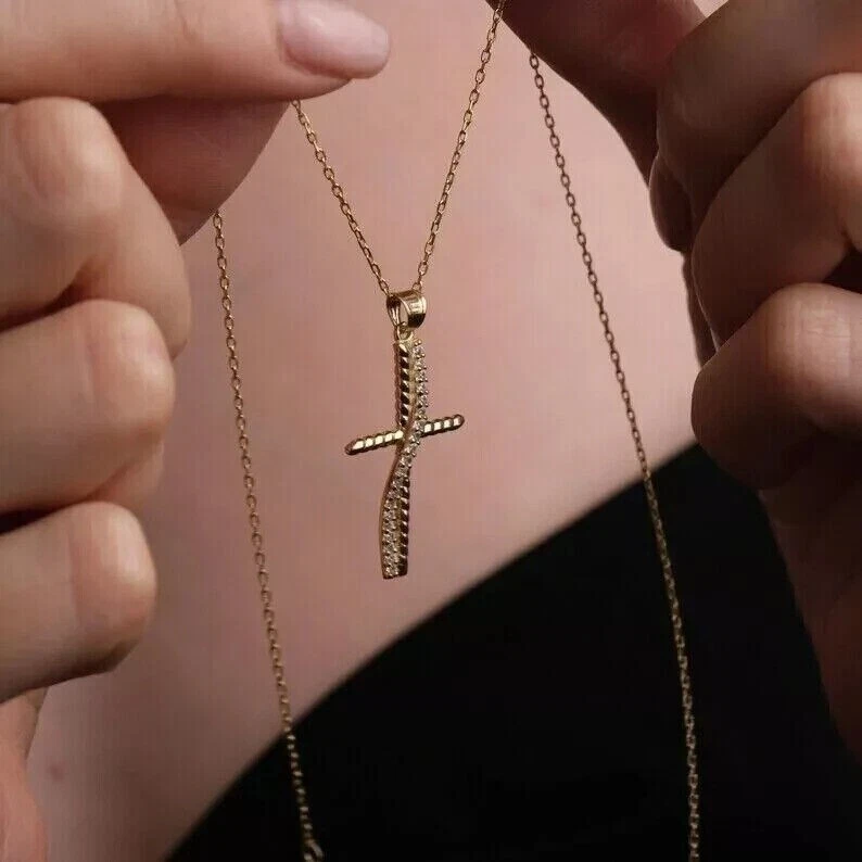Country/Region of Manufacture: India Pendant/Locket Type: Charm Main Stone Color: White Customized: Yes Pendant Shape: Cross Chain Type: Cable Secondary Stone: NA Material: Stone, Metal Setting Style: Prong Main Stone: Simulated Diamond gtin13: Does Not Apply Main Stone Creation: Simulated Antique: No Cut Grade: Excellent Country of Origin: Unknown Number of Gemstones: 00 Base Metal: Yellow Gold Plated Seller Notes: ““Freshly made on order with quality and buyer satisfaction. No old stocks.”” Metal Purity: 925 Theme: Beauty Main Stone Treatment: Unknown Main Stone Shape: Round Vintage: No Type: Pendant Seller Warranty: Yes Brand: sp_jewels UPC: Does Not Apply Color: Yellow Closure: Spring Ring Metal: Sterling Silver Handmade: Yes Occasion: Anniversary, Birthday, Christening, Christmas, Confirmation/Communion, Engagement, Father's Day, Graduation, Mother's Day, Valentine's Day, Wedding Wholesale: Yes Personalize: Yes Style: Pendant