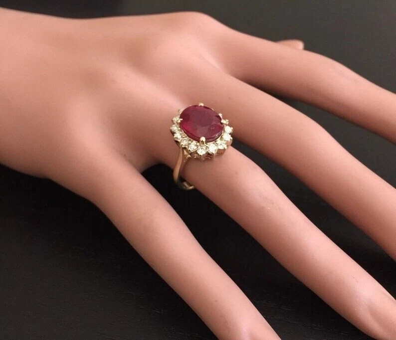 This Women's Halo Ring is a stunning gift for a wife, featuring a 3CT oval natural ruby as the main stone, accented with round diamonds. The ring is crafted with 14k white gold and has a prong setting style. It is perfect for special occasions like engagement, weddings, anniversaries, and birthdays, making it a meaningful and beautiful present. The ring is handmade in India with high-quality materials and comes with a certification from GDGL. It is a unique and personalized piece that exudes beauty and love, making it a perfect choice for any jewelry lover.