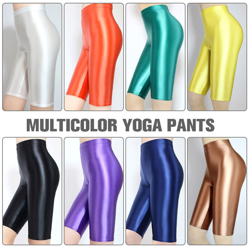 Women's Opaque Shiny Glossy Satin Leggings Sports Yoga Riding High Waist Shorts Item description : 100% Brand New Material:75% nylon 25% spandex Color:Black, Blue, Green, Orange, Purple, Red, White,Pink,Apricot,Gray,Lake blue Size:Tag size S, M, L, XL, 2XL, 3XL,it's Asian size,base on the size chart,please choose right size, Quality: AAA Package: 1 x leggings