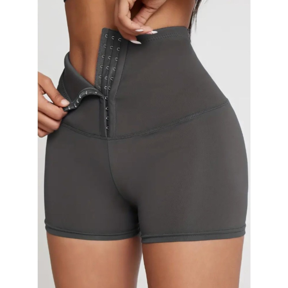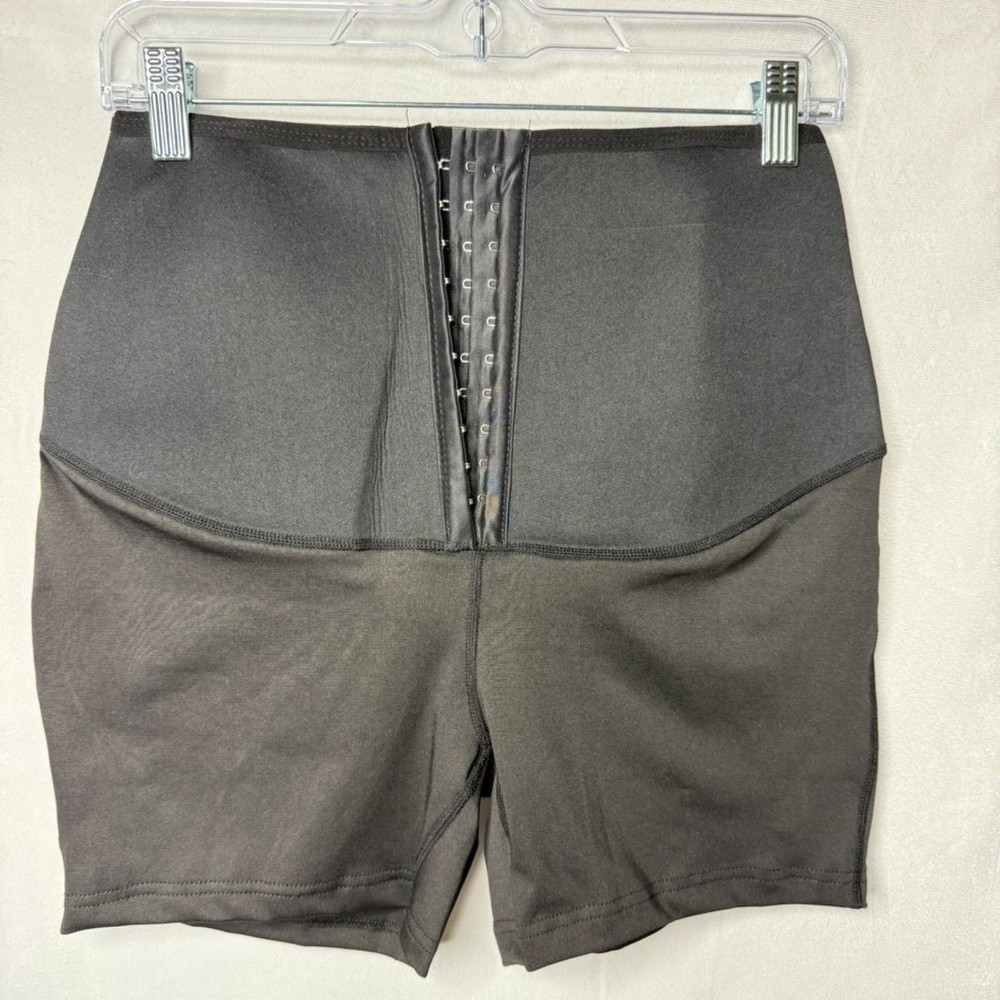 Women's High-Waist Black Shorts with Front Buckle - Casual, Stretchy Polyester Blend, Mid-Thigh Length, Machine Washable - Perfect for Spring/Summer/Fall Size: Large Never worn, like new condition. Please see all photos