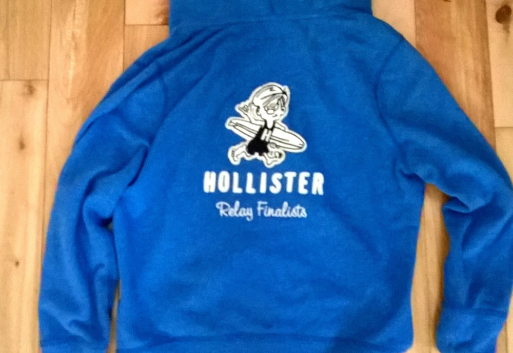 Hollister women hoodie div22 relay finalist edition. Blue color, full zip with hood. Cute little graphic in the back. Worn once and in excellent condition. No defects or hole. Please look at all pictures and measurements on pictures. If you have any question, please ask prior purchase. Please not that color can be slightly off due to camera lighting. Thank you for looking.