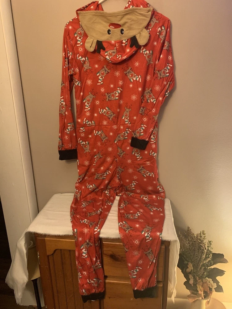 Womens Hooded Reindeer Pajamas/Costume . Condition is Pre-owned. Shipped with USPS Ground Advantage.
