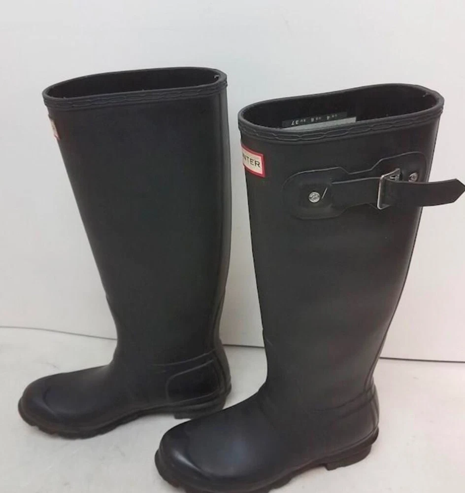 Crafted for both elegance and durability, these Women's Hunter Equestrian Black Rubber Boots are a staple for any fashion-forward wardrobe. Size 6, they wrap your feet in a sleek black rubber that effortlessly combats the elements while maintaining a chic aesthetic.The knee-high riding boot style is complemented by a comfortable polyester lining, ensuring your feet stay cozy. Versatile and timeless, these boots are suitable for numerous occasions, from casual outings to more formal equestrian events. A true blend of function and fashion, they are an impeccable choice for those who appreciate both style and practicality.
