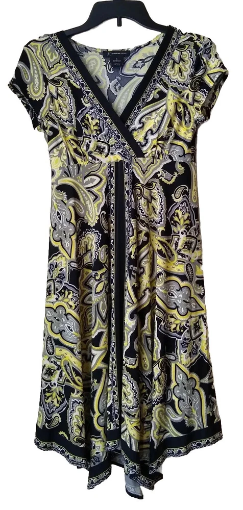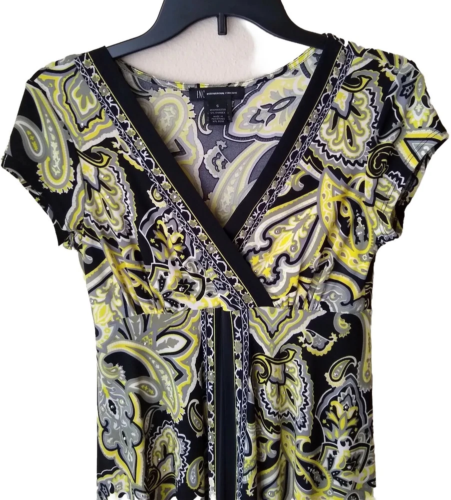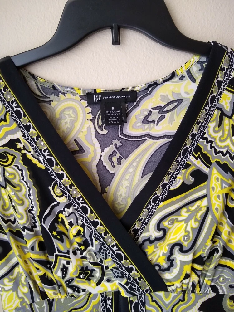 INC International Concepts Women's Yellow Printed Casual Dress Size: Small Dress Description : A-line silhouette •V-neck •Yellow, Gray, and Black Tropical Floral Design •Knee Lenght •Non adjustable waist •Color blocked detail Condition is: Pre-owned. This clothing has been washed and sanitized. Shipped with USPS First Class Package from a Pet and Smoke free home. PLEASE NOTE: DUE TO UNPRECEDENTED VOLUME AT USPS, UPS, and FEDEX, deliveries may be delayed.