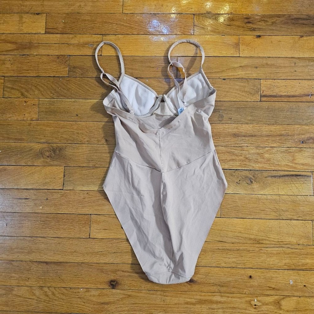 This is a pre-owned La Perla women's shapewear bodysuit in a beige color. The garment features adjustable shoulder straps and a structured, underwired bust. The material composition, visible on the tag, indicates it is 100% Polyamide/Nylon. Sizing information on the tag includes EUR 70, F 80, D 70, E 80, UK 32, and US 32, corresponding to a 32B cup size. The bodysuit shows minor signs of wear consistent with its pre-owned condition. Kindly note: Items are not washed and may have scents (detergent or used clothing). Any stains, rips, or defects are clearly shown in the photos, and actual measurements are included there as well. Orders ship within 1–3 business days. If you have any questions or issues with your order, feel free to message me — I’m happy to help!