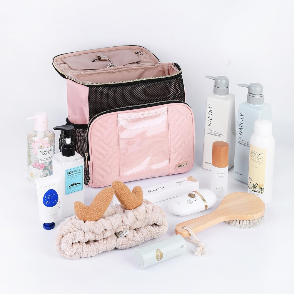 BAFAMYE Women's Hanging Travel Toiletry Bag - Large, Durable, Multipurpose and TSA Approved for the Modern Traveling Woman, Pink Capacious Design - With dimensions of 10in x 10in x 6in, this travel toiletry bag for women can easily accommodate up to 2.6 gal or 9.8L worth of essentials, making it a convenient toiletry bag for women traveling. Durability and Quick-Dry - Fabricated from sturdy oxford fabric and PVC, the BAFAMYE toiletry bag for women exhibits enhanced durability and fast drying abilities. Say goodbye to prolonged wait times for a dry bag! TSA-Compliant - Travel without worry as this women's toiletry travel bag adheres to TSA guidelines, making it a preferred TSA toiletry bag. Unique Multipurpose Use - This women's hanging toiletry bag is not only for travel but can also be utilized for gym use, outdoor activities, and home storage. Truly a toiletry travel bag women would find indispensable! Convenient Phone Access - Not many toiletry bags allow you to keep using your phone in the shower. This unique feature sets our hanging toiletry bag for women apart from others. SHIPPING Domestic Buyers - We have confidence in our products, but if you are not fully satisfied please contact us within 30 days of purchase and you will get full refund. - We ship within 3 business days of payment, usually sooner - We offer FREE shipping on all orders! - We only ship to the lower 48 states, no APO/FPO addresses or PO Boxes allowed International buyers – please note: Import duties, taxes, and charges aren't included in the item price or postage cost. These charges are the buyer's responsibility. - Please check with your country's customs office to determine what these additional costs will be prior to bidding or buying. * Order Cancellation Policy ** You can return a product for up to 30 days from the date you purchased it. 1. The seller reserves the right to cancel the special case only due to eBay cancellation fee. 2. The decision of seller is the final. 3. The seller will respond to the cancellation request within 2 business days. Please wait for the result of cancellation. 4. In case the cancellation is not completed by some reasons, the buyer can follow the options below to get the refund. 4.1 The buyer can reject the item when it arrives. 4.2 The buyer can send the item back to the seller within 30 days If the buyer receives item (USA Shipment ONLY). The seller will provide the FREE return label to the buyer when the buyer opens " Return Item" case on eBay by using the reason as "Change my mind" ONLY. 5. When buyer has placed the order. The order will be processed and completed by automatic warehouse system within 5 minutes. In case that buyer sends the cancellation request after 5 minutes of placing the order, the request will be rejected. **Sending direct message to cancel the order is not allowed for every case.* Return Policy For the return case - If buyer would like to return the items for refund or replacement, please CONTACT SELLER to receive the free return label from seller. The refund or replacement will be processed with the tracking number of return label which is provided by seller only. The other ways of return which are not approved by seller will not be processed for the refund or replacement.