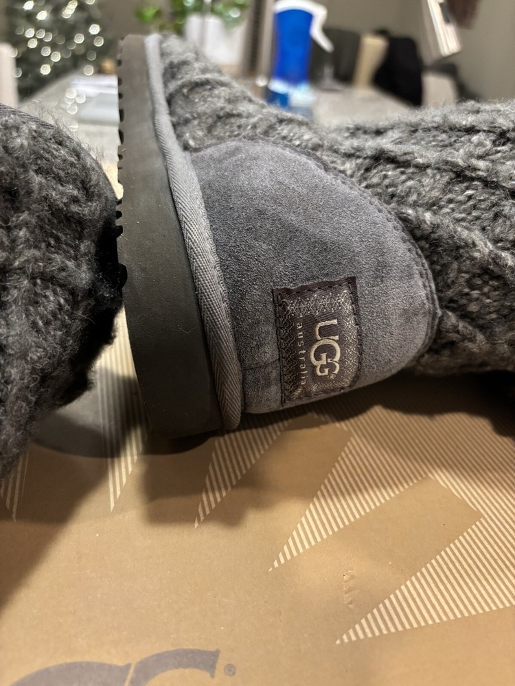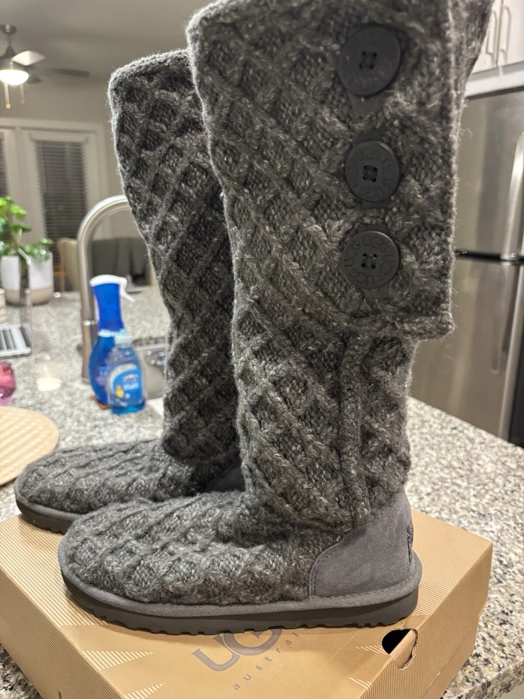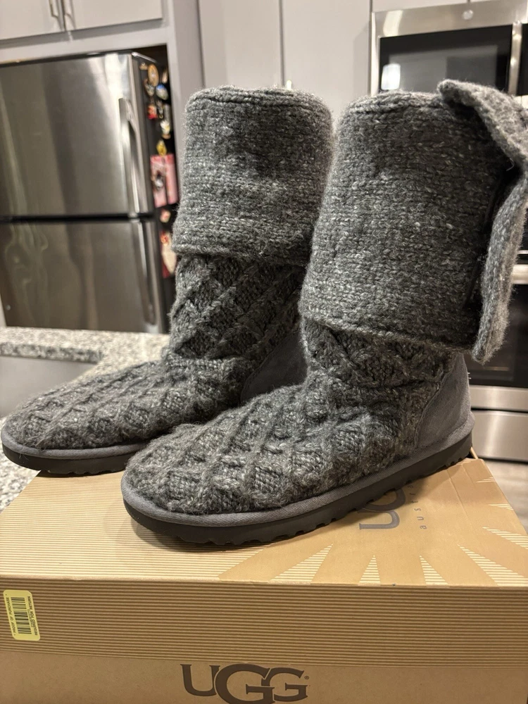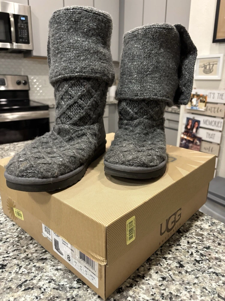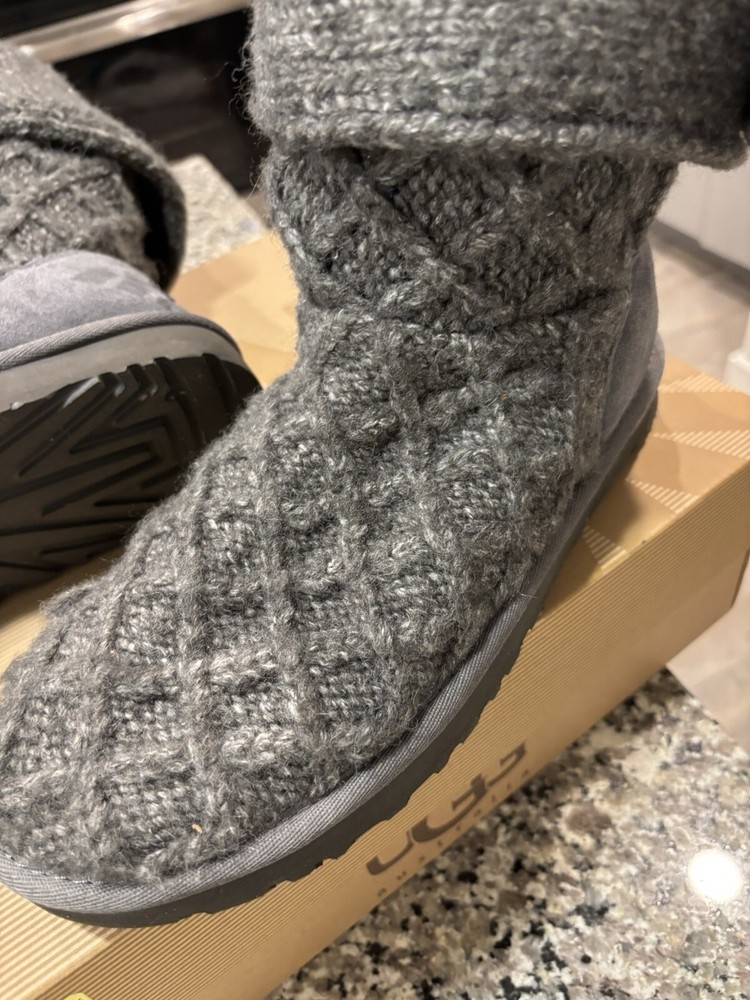 Women’s Lattice Cardy Ugg Size 8 Charcoal Grey Knit Tall Boots Uggs Ugg. Condition is Pre-owned. Shipped with UPS Ground Saver.