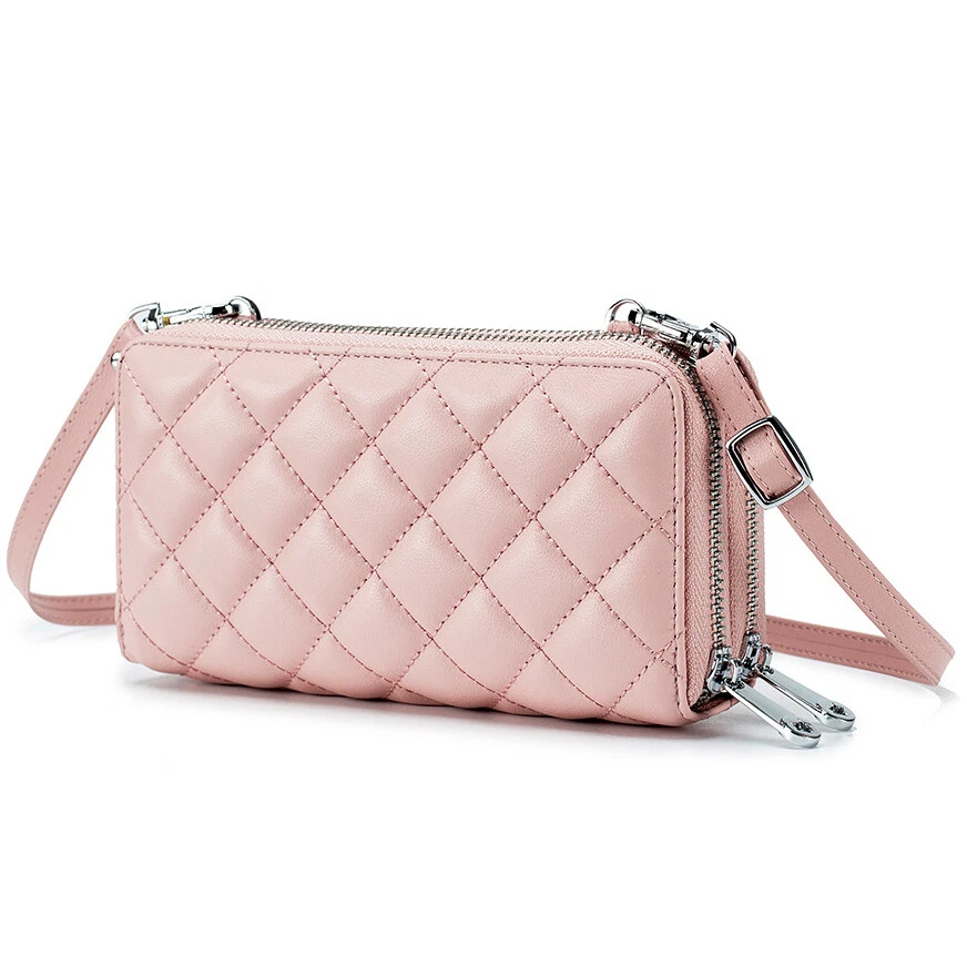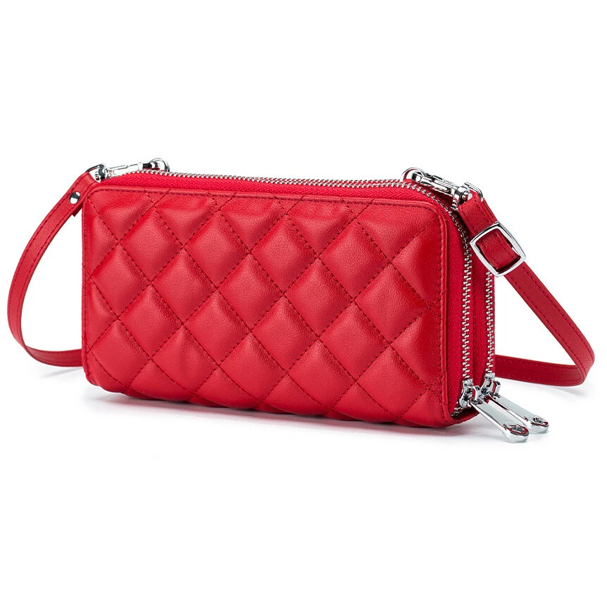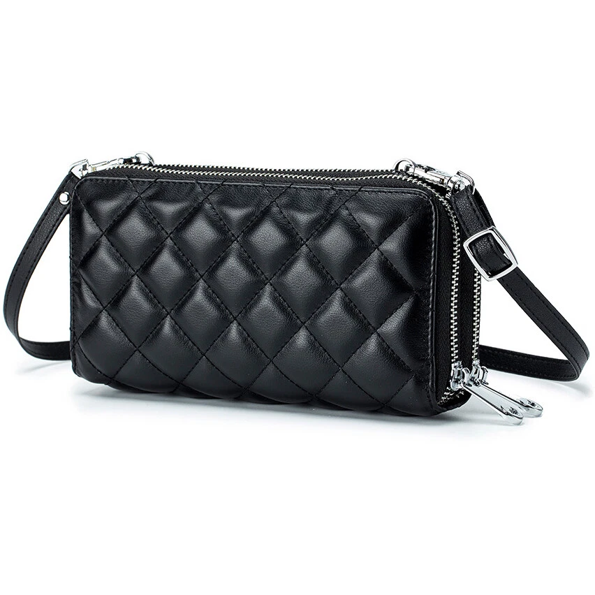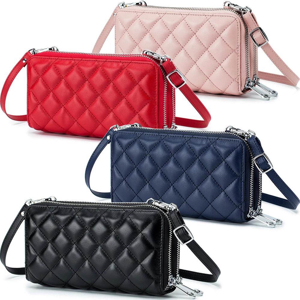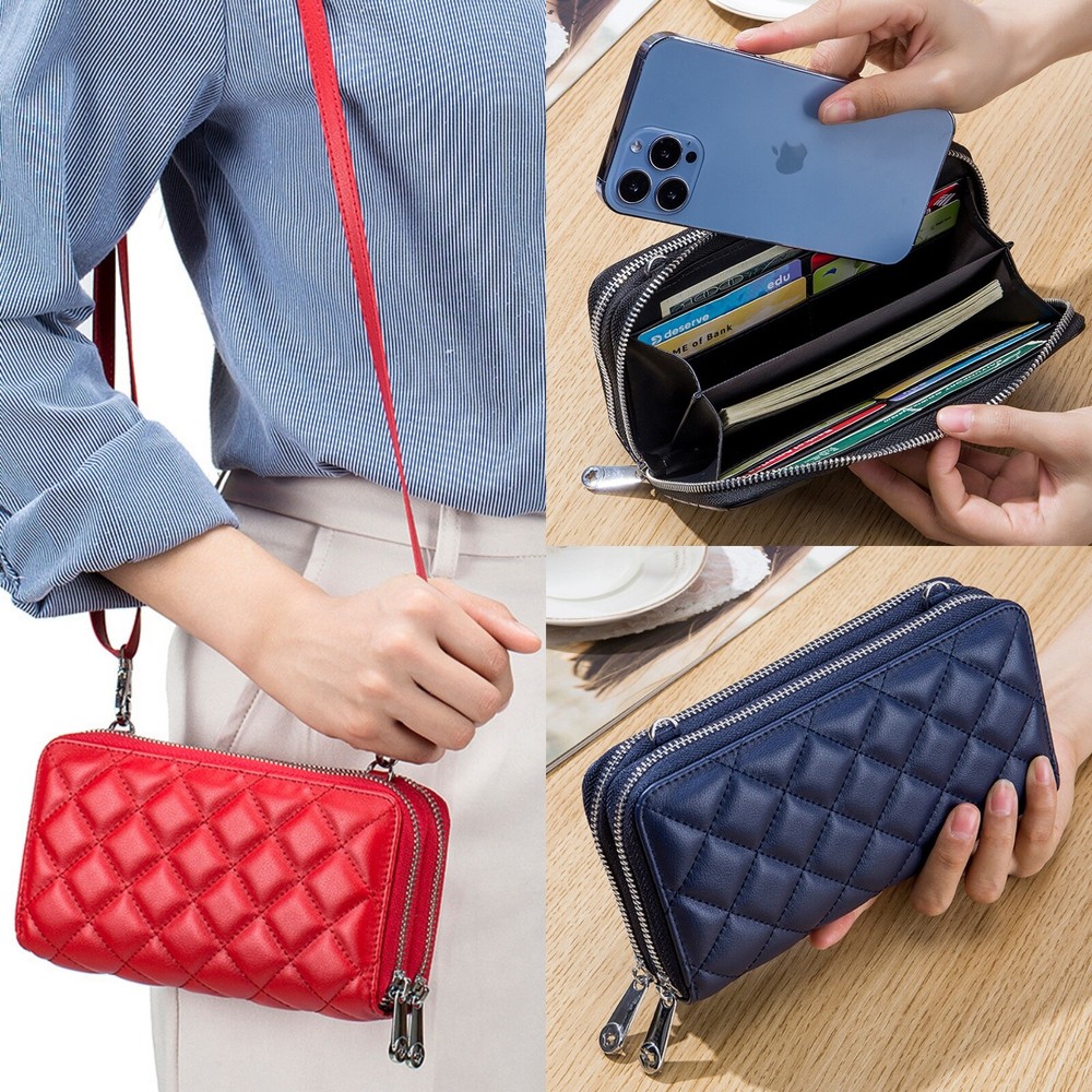 Genuine Leather Imported Zipper closure S ize:7.87 * 3.93 * 1.96in Crossbody & Wristlet Wallet Purse: Comes with adjustable/ removable shoulder( drop: 14.17"- 27.56") . It is lightweight( Net weight: 0.59lbs) to use as a crossbody phone purse, shoulder phone purse, wristlet wallet and clutch wallet Phone Purse & Wallet in One: This crossbody purse is the perfect combination of a cell phone purse and clutch wallet, making life easier and more stylish for women on-the-go. It has 2 main zipper compartment including 8 credit card slots, 2 slip pockets. Fits Most Phones: It fits phones up to 6.7 inches, including popular models like Phone 14 Pro Max, SE, XS Max and for Samsung Satisfaction Guarantee: This crossbody cell phone purse comes with 30 days warranty and lifetime customer service