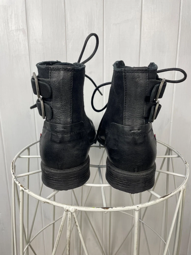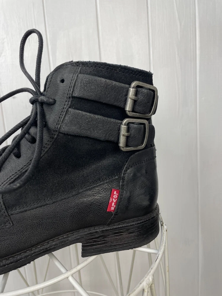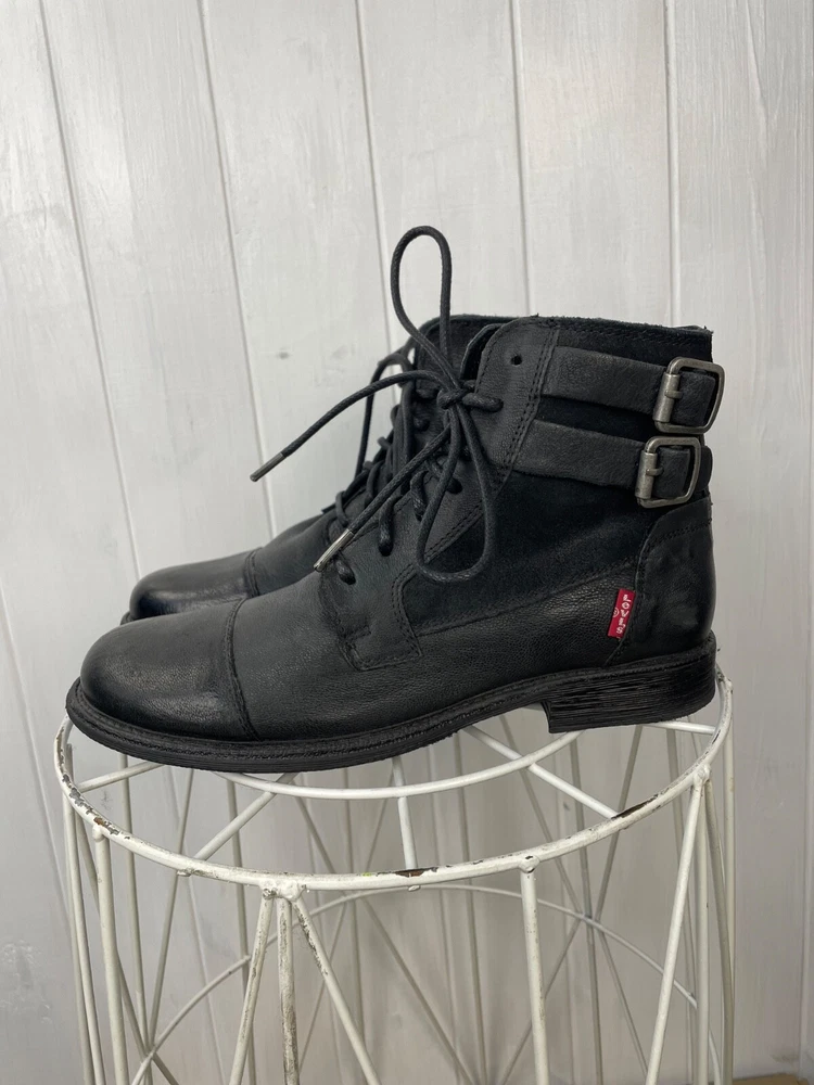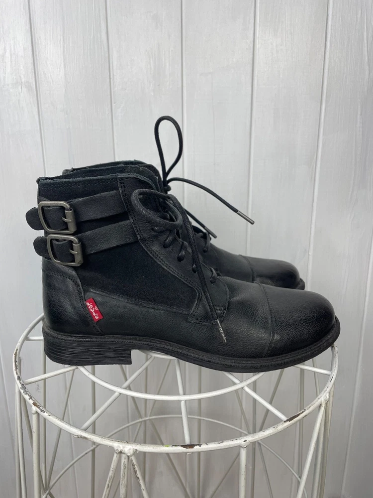 EU Shoe Size:39Toe Shape:Round ToeVintage:NoSeller Notes:“Very good used cond., has sign of wear without defects.”Shoe Shaft Style:Mid-CalfType:BootColor:BlackShoe Width:StandardTheme:Biker, Bohemian, City, Cowboy, Cowgirl, Gothic, Metal, Motorcycle, Punk, Rock, SouthwesternUpper Material:LeatherDepartment:WomenLining Material:LeatherUK Shoe Size:6Insole Material:LeatherOutsole Material:FabricUS Shoe Size:7.5Customized:NoBrand:Levi'sPattern:SolidOccasion:CasualClosure:DrawstringStyle:Western