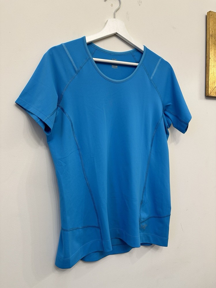 In perfect condition, a sports top from arcteryx, please check last pictures for the true color of the item. Has a reflective back. Womens size L. 46 x 65cm Arc arcteryx womens sport workout top gym gymwear skims treniruotems moteriskas virsus sportas sportui