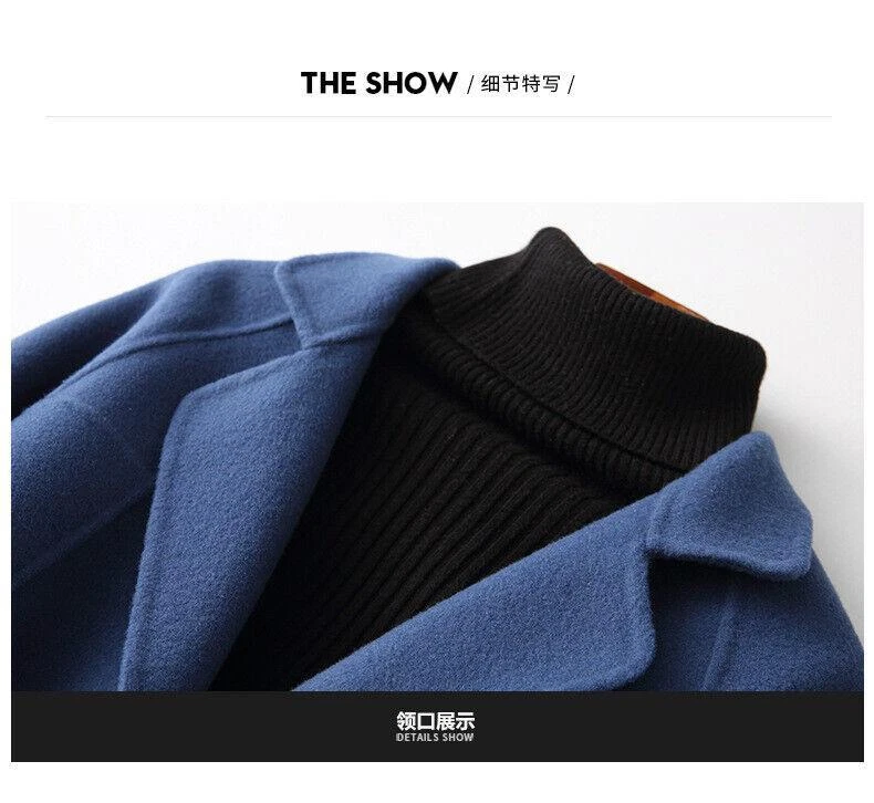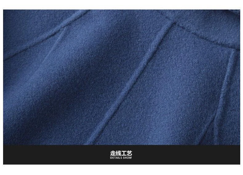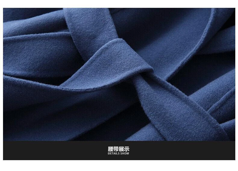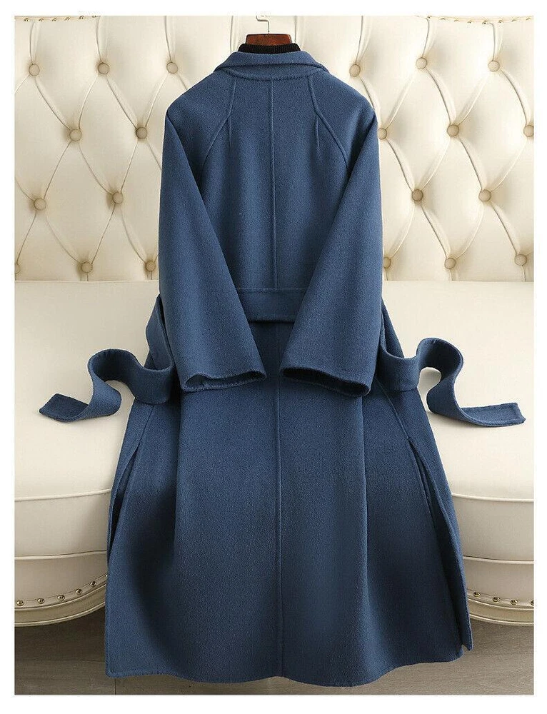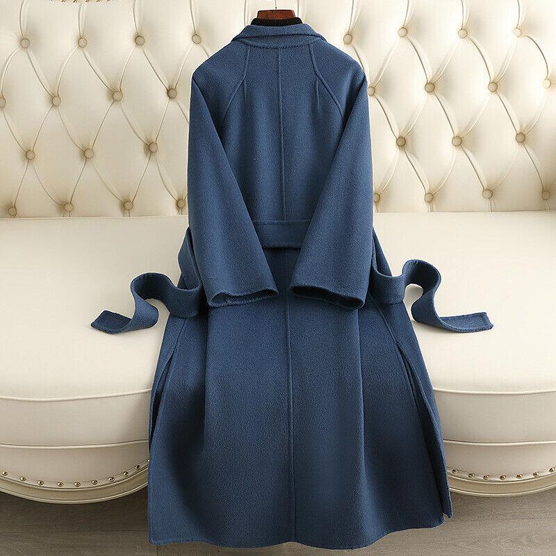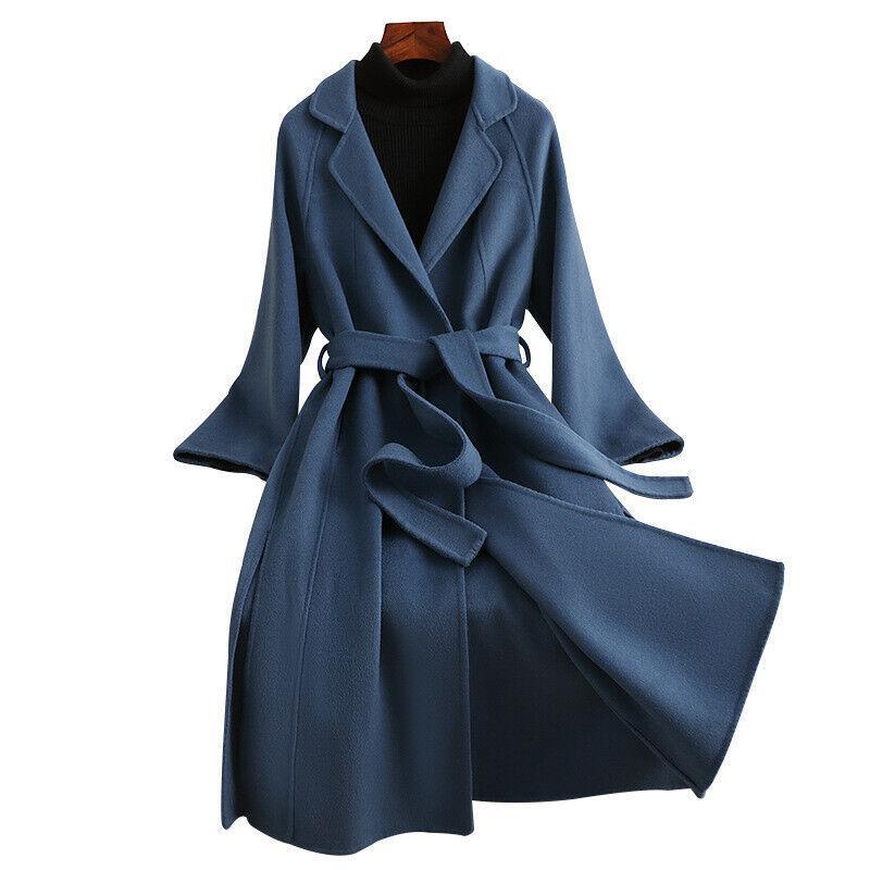 Women's Long Wool Double-Sided Trench Coat with Lapel Collar