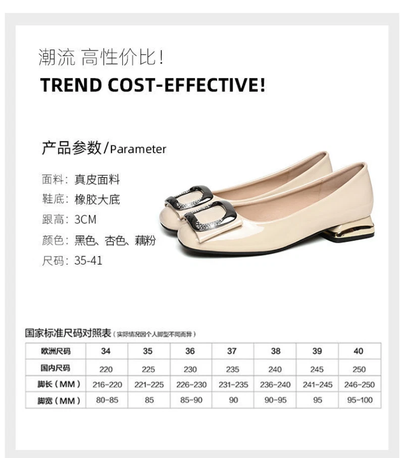 Love these stylish yet comfy shoes! The low heel is perfect for all-day wear, and the leather feels high-quality. The shallow mouth gives them a sleek look, great for both work and casual outings. Super versatile and well-made—definitely worth it!