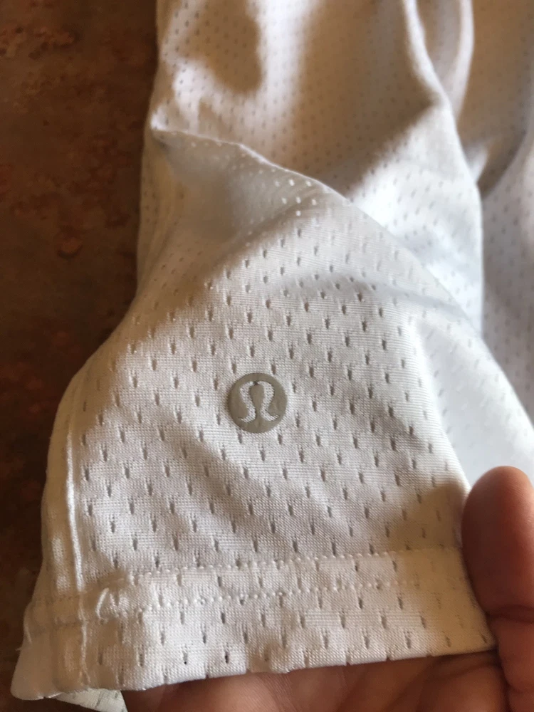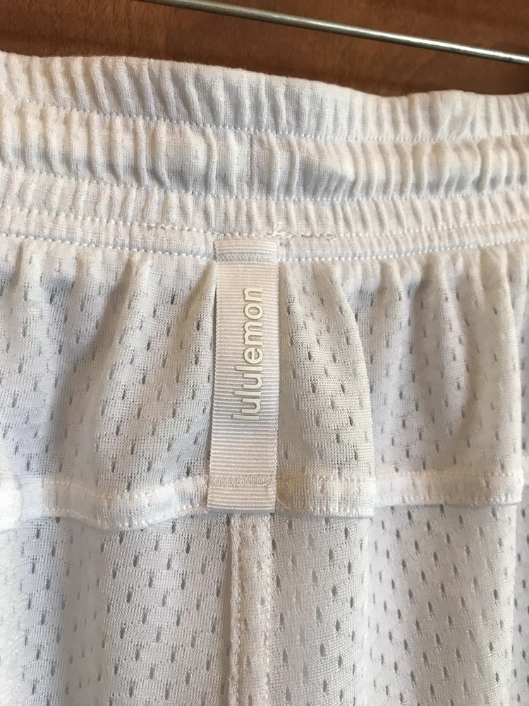 Lululemon. Women’s size 6. Mesh. Fully lined - soft lining. Made of recycled polyester. Lining made of 81% nylon, 19% Lycra. Relaxed fit. White in color. Comes from a clean, smoke free home.