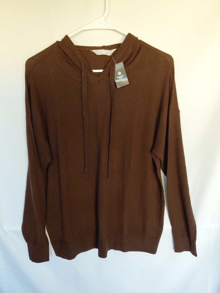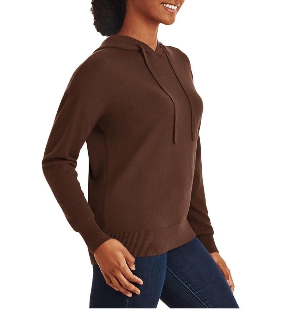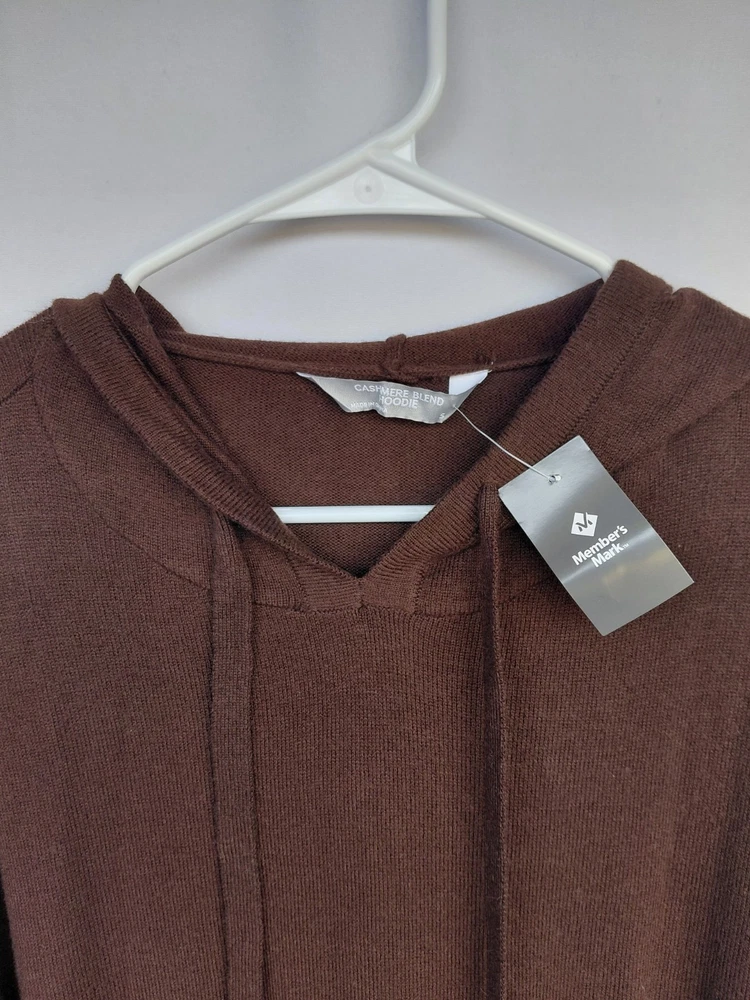 This women's cashmere blend hoodie in size S is a stylish and cozy addition to any activewear collection. Made from a luxurious blend of materials including 10% cashmere, this hoodie features a solid brown color, long sleeves, and a pullover closure for easy wear. With a knit fabric type and a mix of polyester, acrylic, wool, and nylon, this hoodie offers both comfort and warmth, making it perfect for winter, fall, and spring seasons. Perfect for walking and other outdoor activities, this hoodie from Member's Mark is a versatile and high-quality piece that is sure to become a favorite go-to garment in any woman's wardrobe.