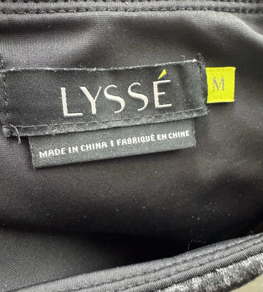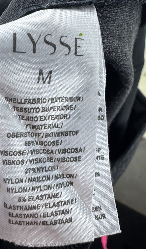 The Women's Lyssé Slimming High Waisted Tummy Control Leggings in size M are designed for a flattering and comfortable fit. Made from a blended fabric of nylon, spandex, and viscose, these black leggings feature a high rise waist for added tummy control and slimming effects. With an ankle length inseam of 28 inches, these leggings are perfect for everyday wear and provide both style and functionality. The stretch material ensures flexibility and comfort, making them an essential addition to any woman's wardrobe. Rise 11’’ Inseam 28’’