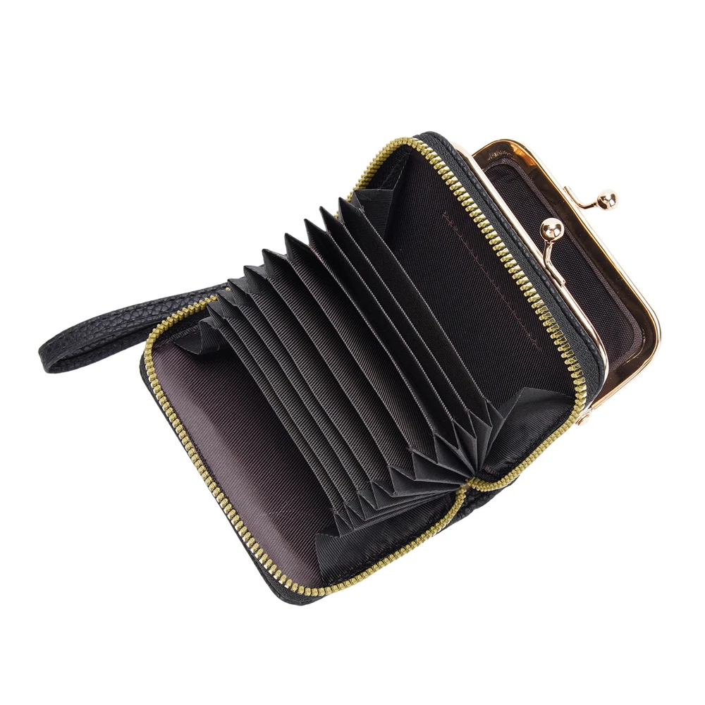 About this item: Size --- 4.3*3.2*2.2 inch/11*8*5.5 cm , large space for your tiny belongings,suit for place in corssbody bag and backpack ,tote ect. Wallet Part 1 --- It's a card holder with 11 slots,2 cards can in 1 slot,so it can load more than 18 pcs various financial and ID cards. The slots are easy to use, cards slide in & out without being stuck.it very handy for those who need to show an ID or license regularly. Wallet Part 2 --- This part is a classic pouch ,it's a very useful pocket for women, like AirTag ,keychain ,coin ,and Airpods ,Lipstick ,car key etc. Ocassion --- When your shopping,travel,work ,put in your tote,backpack, it a good orgnizer, it's also a good place when you feel some tiny things is important but smaller easy to lose. Gift --- it's also a very sweet gift for Her