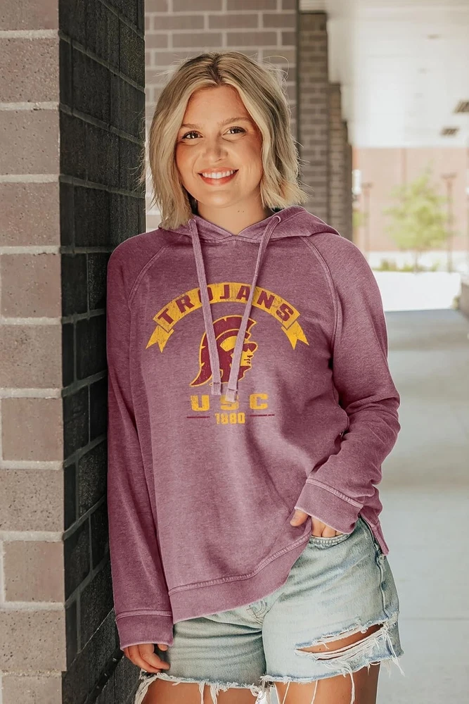 Women's NCAA Officially Licensed Hooded Sweatshirt Burnout Vintage Scholar fan favorite USC Trojans women's burnout hoodie This USC ladies hooded sweatshirt has a vintage graphic perfect for any Trojans fan that loves to show their team pride Each USC Trojans sweatshirt is made from a soft bi-blend fleece and has a stylish burnout wash This comfortable sweatshirt is great for layering or wearing on it's own, making it a perfect addition to any USC fans wardrobe All products are officially licensed by the universities and produced using ethical sourcing and manufacturing practices Proudly display your team pride with this ladies hooded sweatshirt. It's durability will ensure a long of cheering on your favorite team. The vintage graphics make for an extraordinary looking women's burnout hoodie