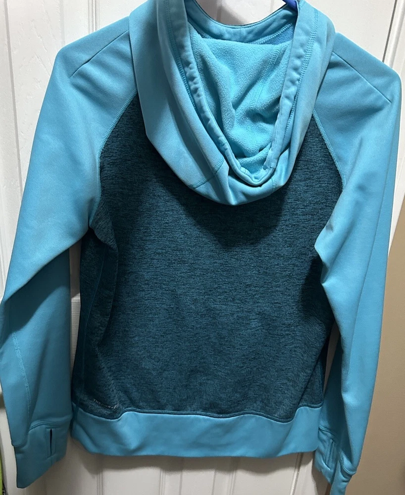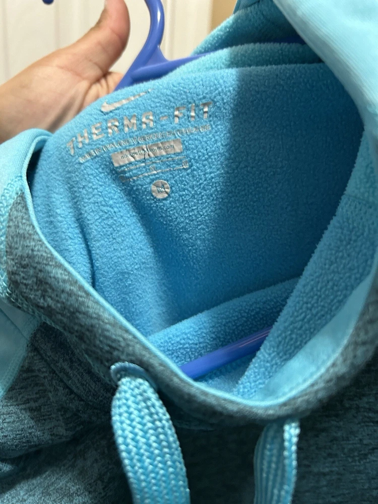 Women's Nike Dri Fit Pullover Hoodie Baby blue Size Medium. Condition is Pre-owned. Shipped with USPS Ground Advantage. In good used condition only defect are the pull strings…. see strings in last photo... Pet & smoke free home!
