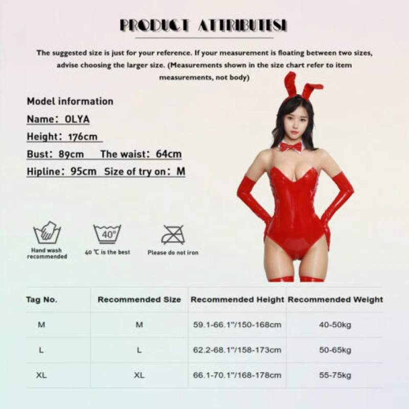 Welcome to Our Store! We Are Offering High Quality Products with Reasonable Wholesale Price. All Products Are Supply from Factory Directly. Excellent Service and Fast Shipping. Description Set Include : 1x Bodysuit, 1x Hair Hoop, 1x Collar, 2x Shoulder Straps Condition : New without tag Material : 80% PU, 10% Polyester, 10% Spandex Features : Made of pu leather, polyester and spandex material, soft, silky, cool and durable to wear. Bodysuit matching with bunny ear hair hoop, collar and shoulder straps can make the bunny animal role play more real. Show off your body curve and make you more attractive to your lover. A good gift to excite your lover in special night. Great for date night, Valentine’s Day, anniversary, wedding night, honeymoon, theme party, role play, nightclub, performance, and etc. Please check the size clearly before purchasing, hand wash cold recommend. Size Chart The suggested size is just for your reference. If your measurement is floating between two sizes, advise choosing the larger size. (Measurements shown in the size chart refer to item measurements, not body) Tag No. Recommended Size Recommended Height Recommended Weight M M 59.1-66.1’’/150-168cm 40-50kg L L 62.2-68.1’’/158-173cm 50-65kg XL XL 66.1-70.1’’/168-178cm 55-75kg Friendly Tips: The size is measured by hands, please allow minor error of measurement. Photo color might be a little different from the actual product due to color display of different monitors. Payment Payment is needed to receive within 7 days after deal.if not we will close the transaction. Shipping Shipping Method Shipping Destination Shippint Time Economy(with Tracking) USA 10-20 working days Economy(without Tracking) Canada, United Kingdom, Austrilia, France, Germany, Spain, Ireland, Italy, Others 15-30 working days Standard (EMS Express) USA, Canada, United Kingdom, Austrilia, France, Germany, Spain, Ireland, Italy, Others 5-7 working days Express (DHL Express) USA, Canada, United Kingdom, Austrilia, France, Germany, Spain, Ireland, Italy, Others 3-4 working days Customs Declaration: Import duties, taxes and charges are not included in the item price or shipping charges. These charges are the buyer’s responsibility. Please check with your country’s customs office to determine what these additional costs will be prior to biddingying. DHL can not reach to few remote areas in your country,if you choose Express and living remote areas. You should pay the additional shipping charge. If your area belongs to remote areas, the parcel can't reach, or you need to pay more freight, our customer service will contact you. If you need to add the tracking number, be sure to contact customer service before making orders especial for the people comes from the country of Eastern Europe, the Middle East and South American. It needs to pay the extra shipping cost! Order can not be shipping to any P.O boxes. Order can only be shipped to physical addresses.