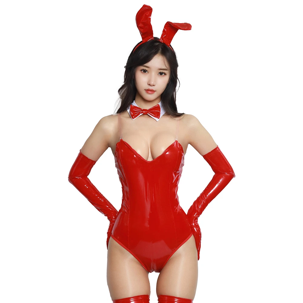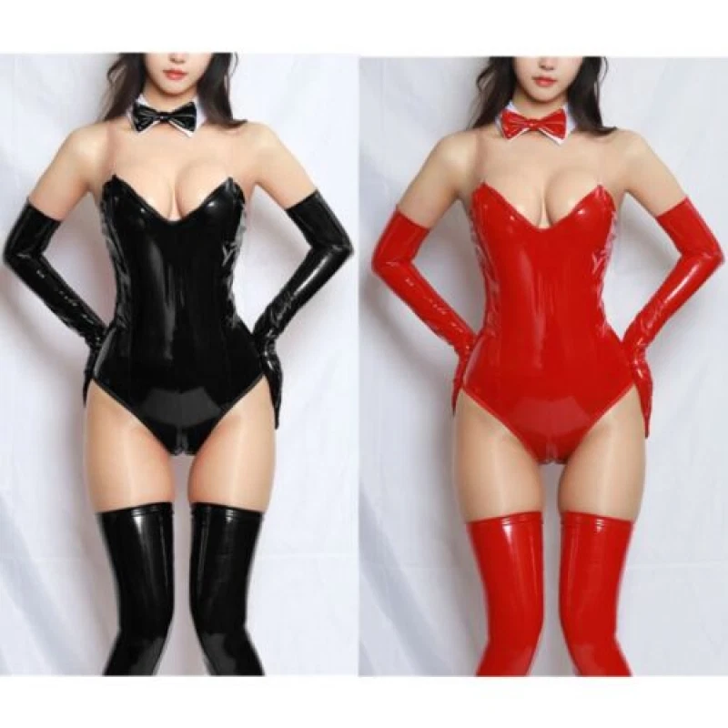 Womens Patent Leather Bunny Girl Costume Nightclub Outfit Fancy Dress Clubwear