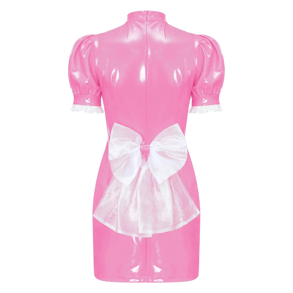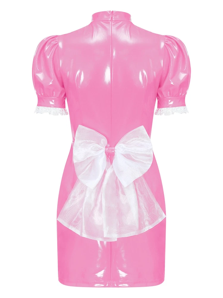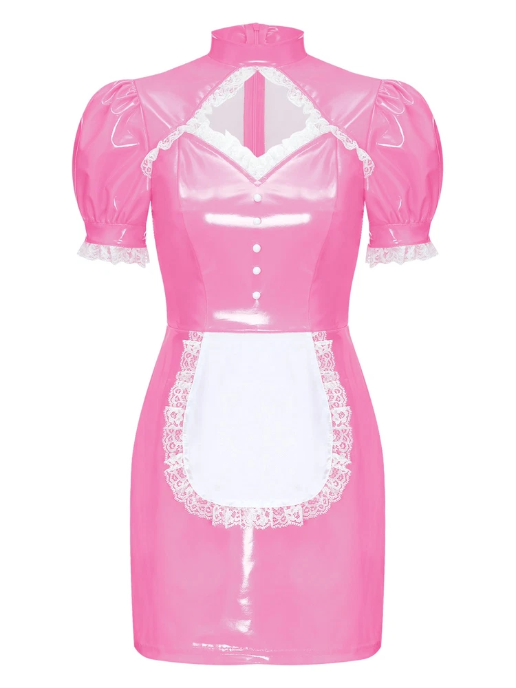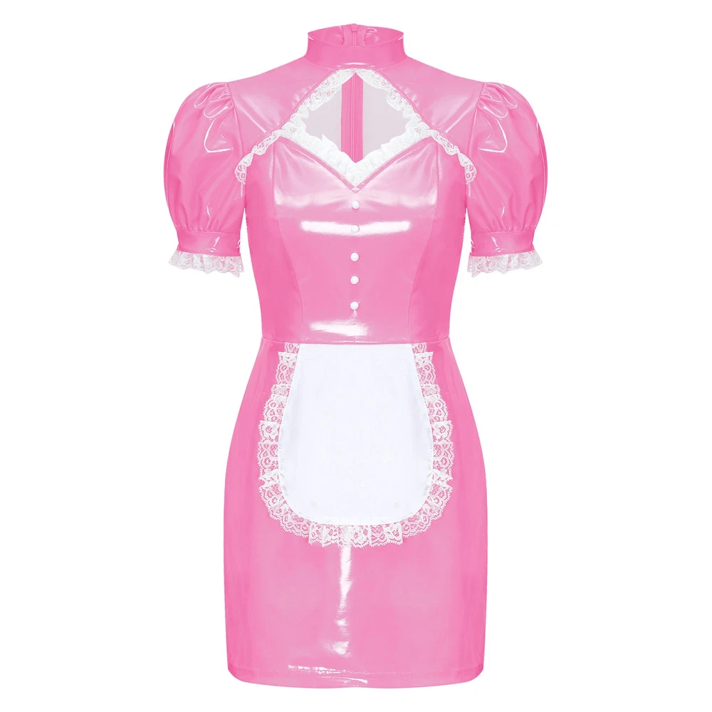 Womens Patent Leather Wet Look Maid Fancy Dress-up Costume Cosplay Bodycon Dress