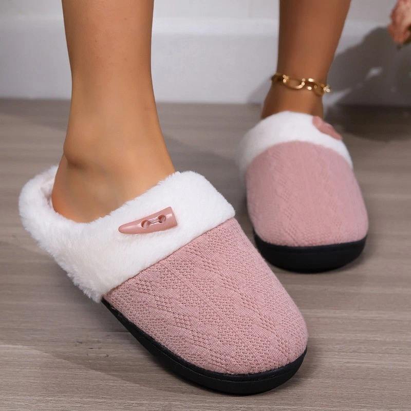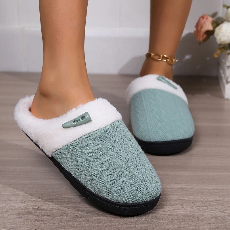 Women Lightweight Slippers Shoes Faux Fur Lining Slip On House Shoes