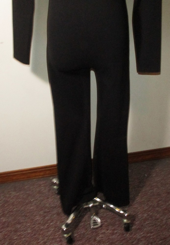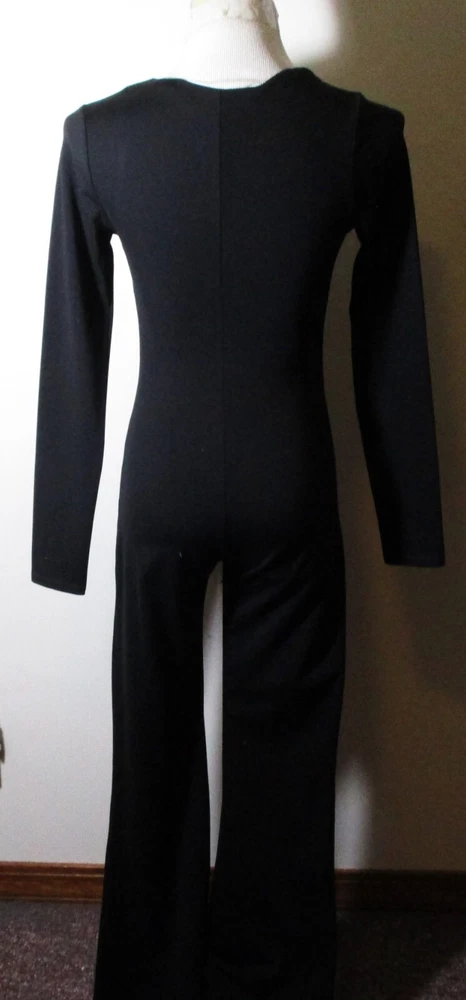 See my EBAY STORE at “SAMTPC53” to view 100’s more of my Women's SKIRTS!!! Combine Shipping: (on multiple items you pay full price on heaviest item first and then HALF PRICE shipping on ALL other clothes items. Women's Flared Full Body Suit. Brand: QINSEN. Description: women's Nylon stretch QINSEN long sleeve flared body suit, see pics. Color: Black. Size: L (please see measurements). Measurements: 15" armpit to armpit, 54" neckline to bottom hem, 30" inseam, 20" insleeve. Material: 78% Nylon, 22% Spandex. Condition: Excellent condition, NWT.