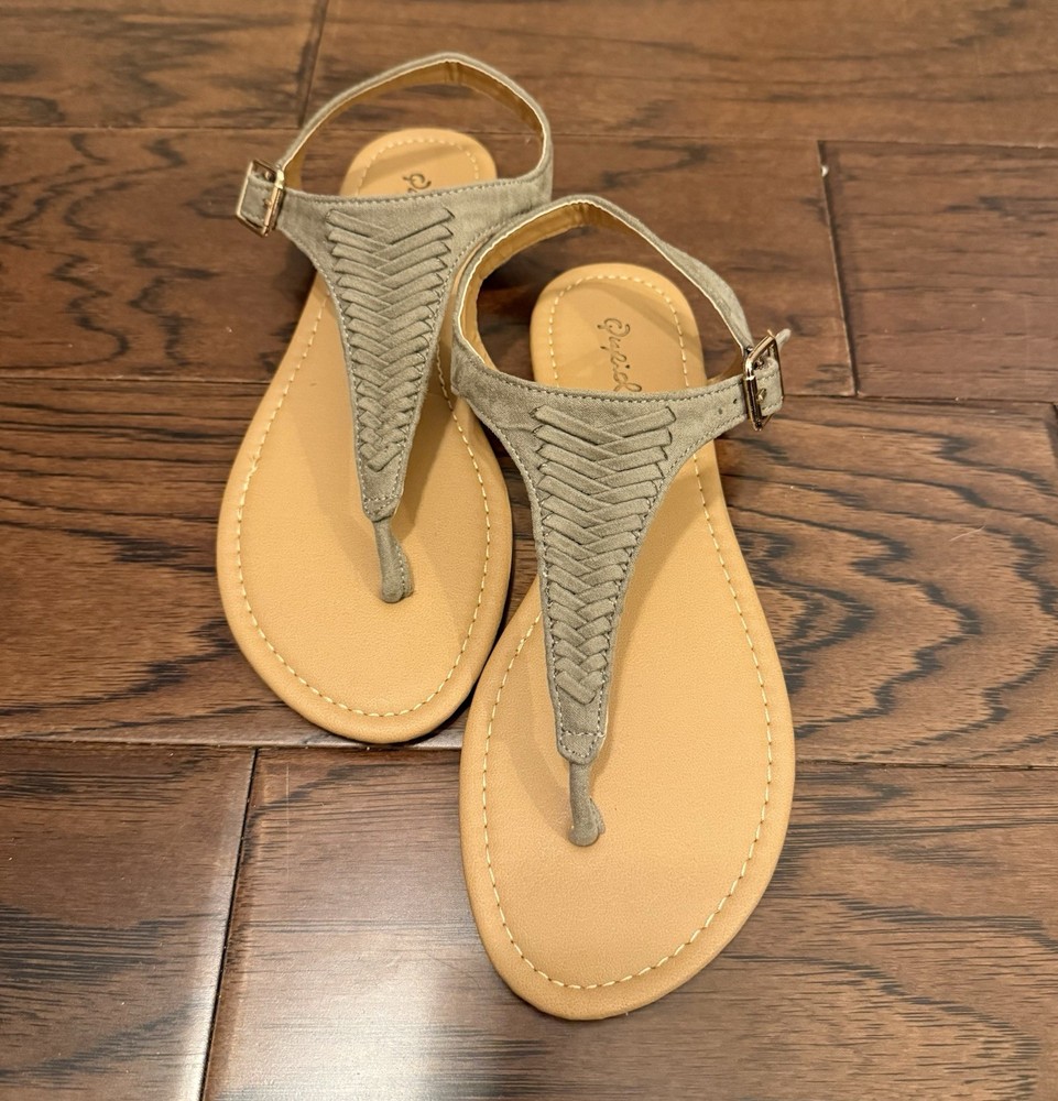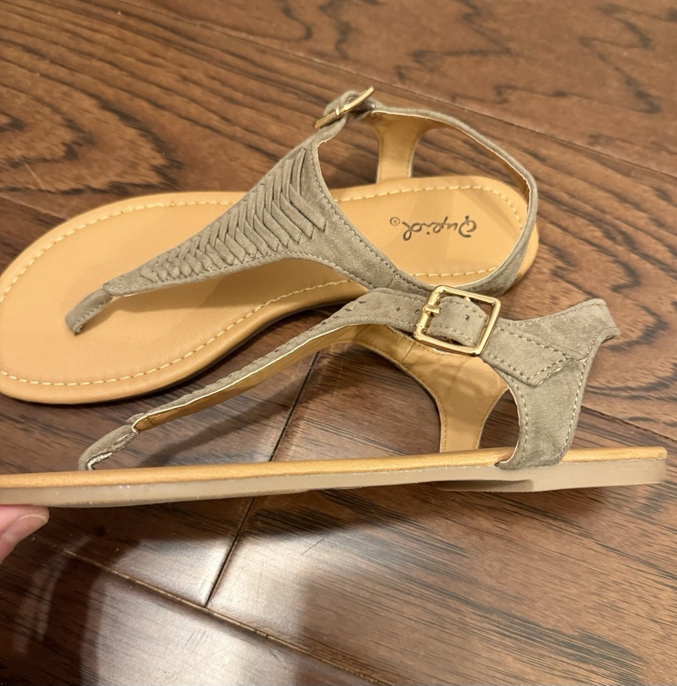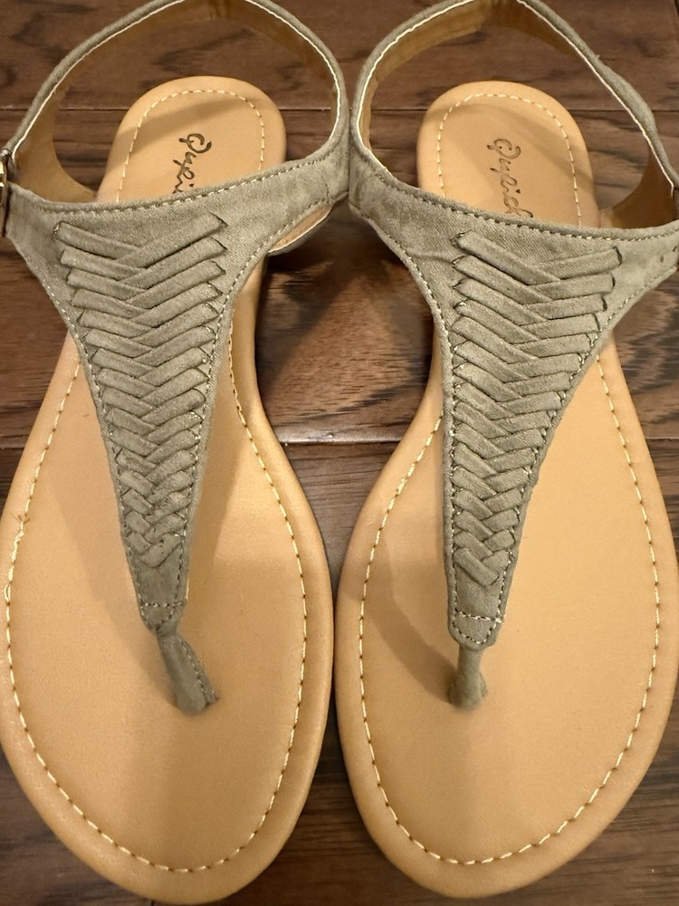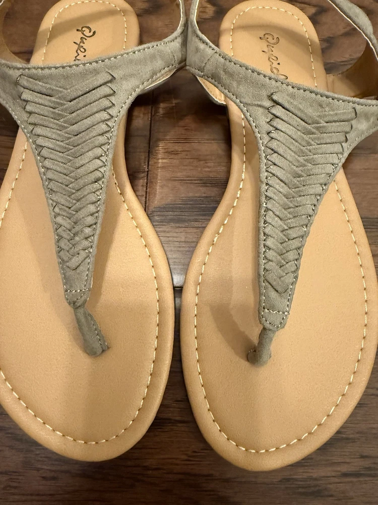 The Women's Qupid Fishtail Thong Sandal in size 7 is a stylish and comfortable option for casual occasions. The beige color and solid pattern make it versatile for pairing with a variety of outfits. With a low heel height and flat heel style, these sandals provide all-day comfort. The buckle closure and ankle strap feature add a touch of security and support. Made with synthetic upper material, these sandals are durable for summer and spring wear, making them a practical and fashionable choice for women.