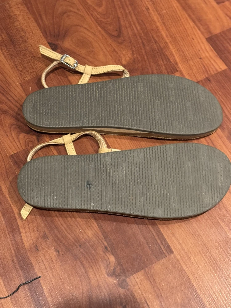 Heel Style: Flat US Shoe Size: 7.5 - 8.5 Accents: Braided, Rainbow Logo Woven Label Brand: Rainbow Sandals Season: Summer, Spring Upper Material: Leather Theme: Bohemian, Beach Closure: Buckle UK Shoe Size: 8.5 Style: T-STREET Department: Women AU Shoe Size: 8.5 Model: T-Street Color: Brown Features: Arch Support, Non-slip Bottom, Heel Strap Type: Sandal