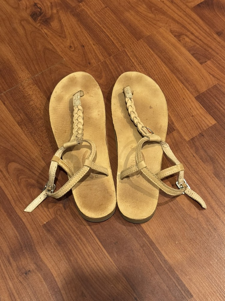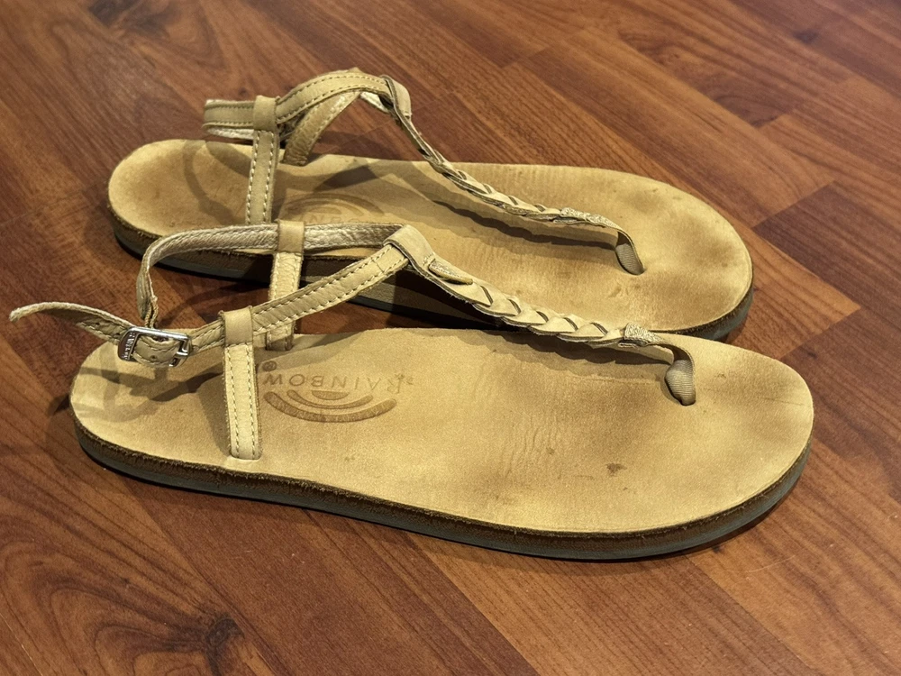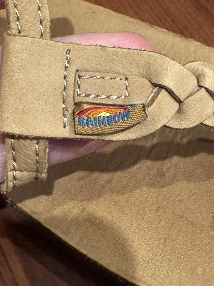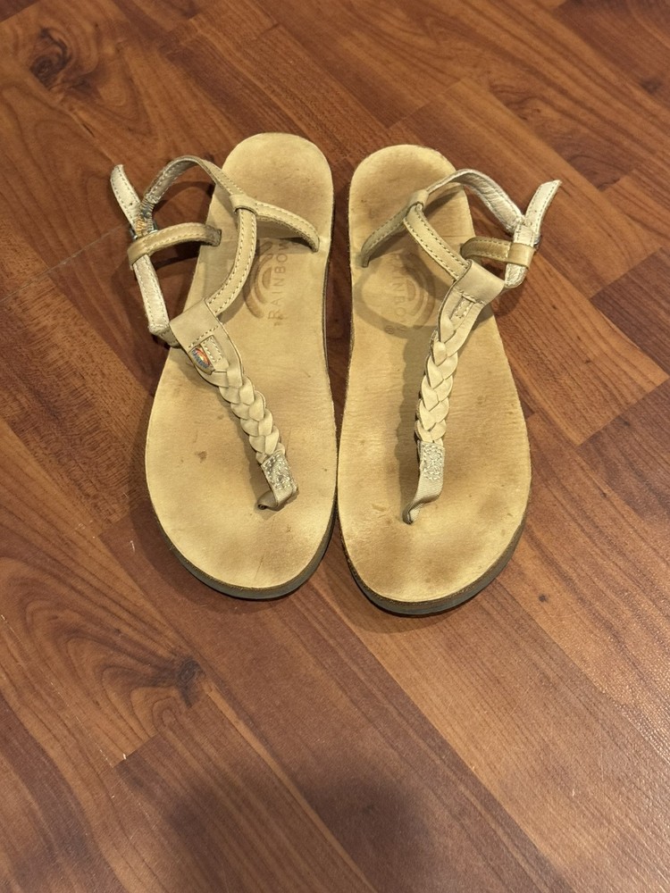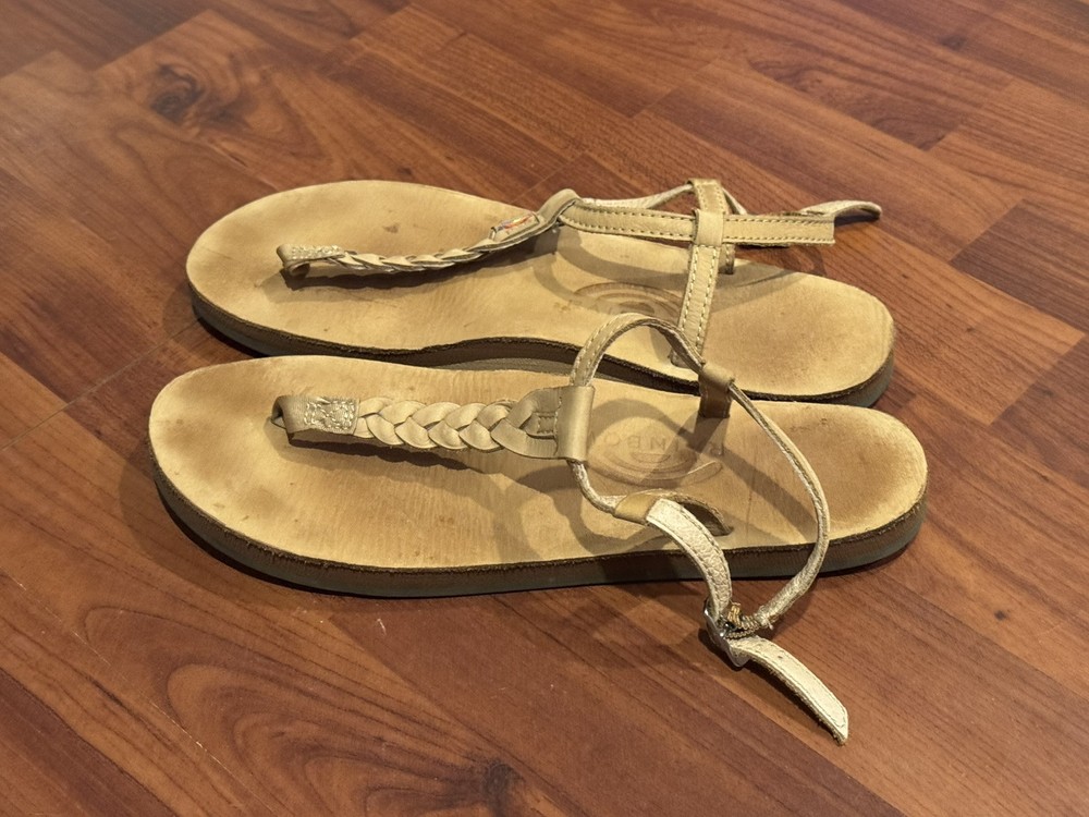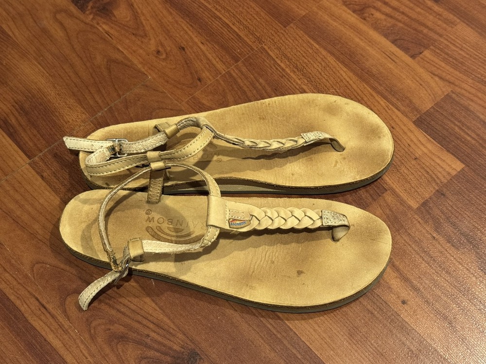 Women's Rainbow T-Street Leather Sandals Size LARGE 7.5 - 8.5 Braided Brown Tan