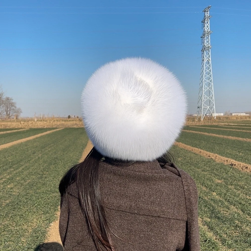 Women's Warm Extra Large Real Fox Fur Earmuffs Earlap Ear Muff Leather Bracket
