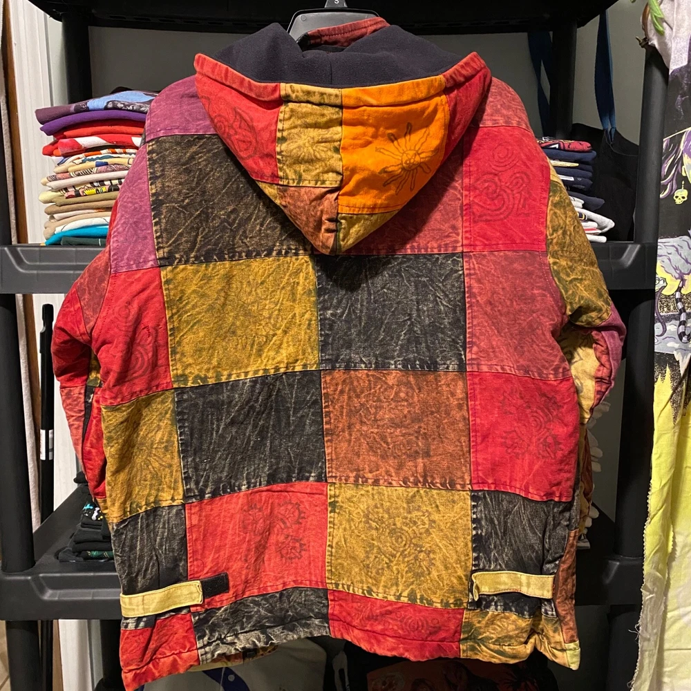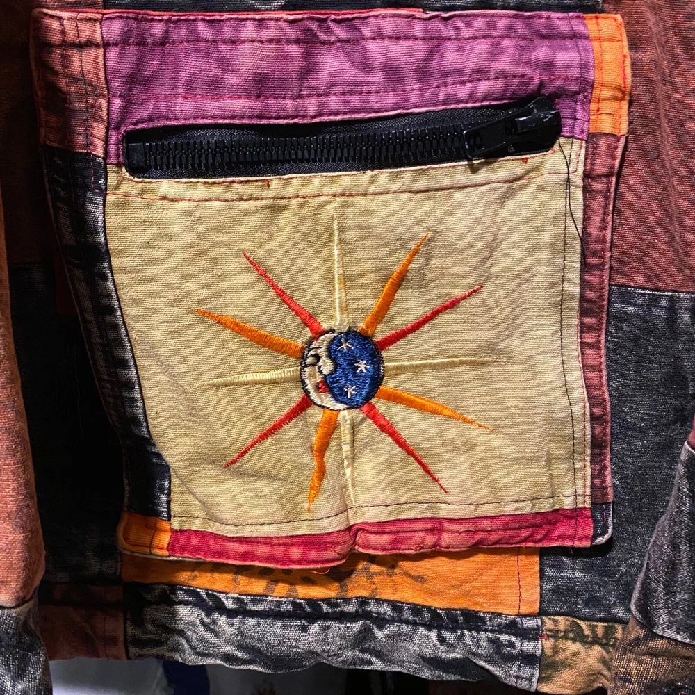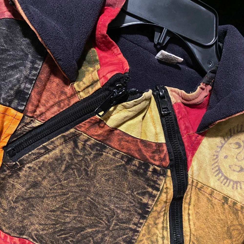 Womens Retro Hippie Style Patchwork Embroidered Multi Color Hooded Jacket XL