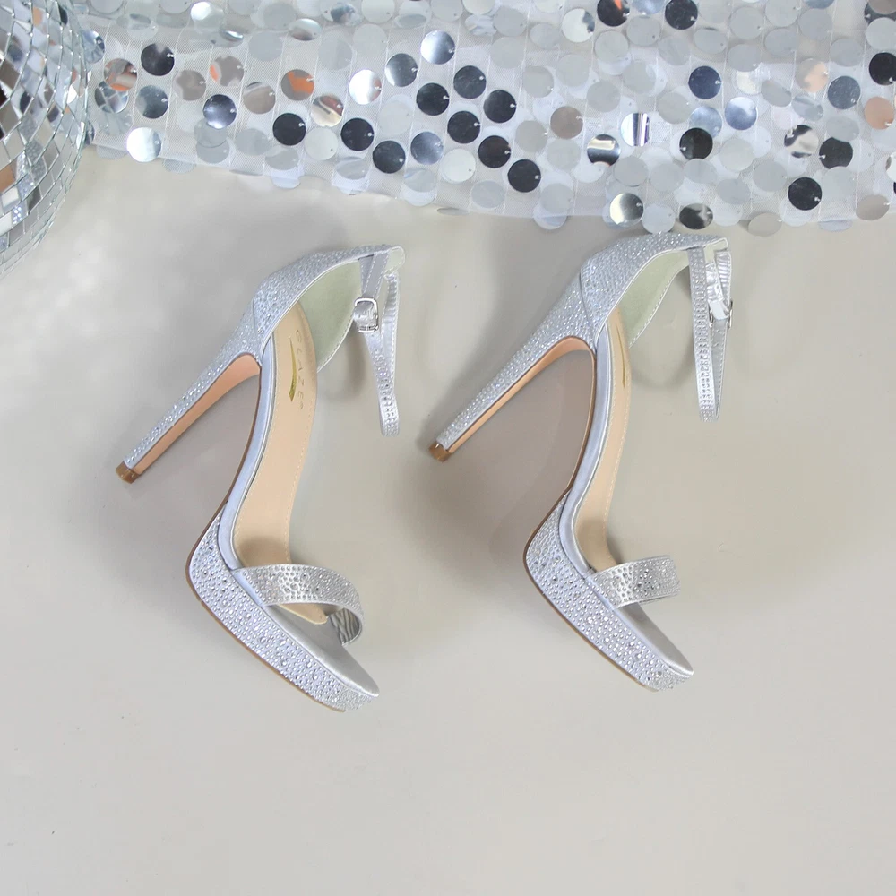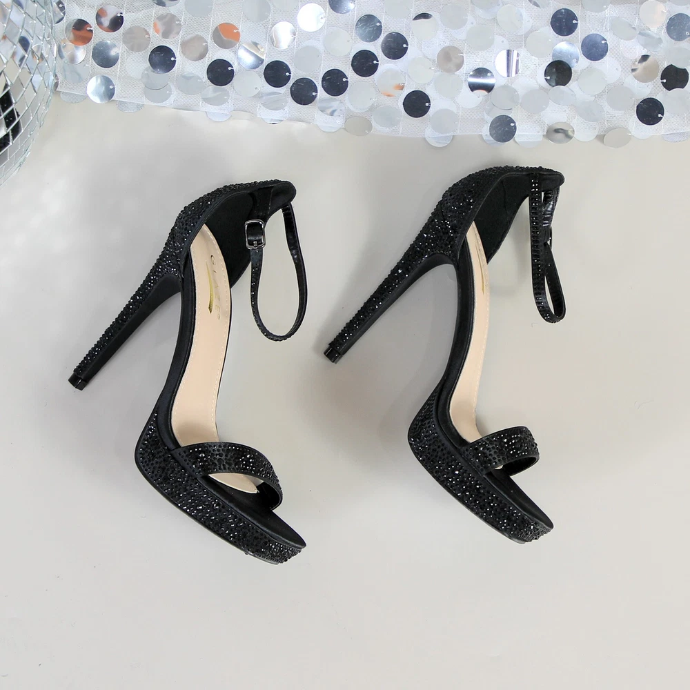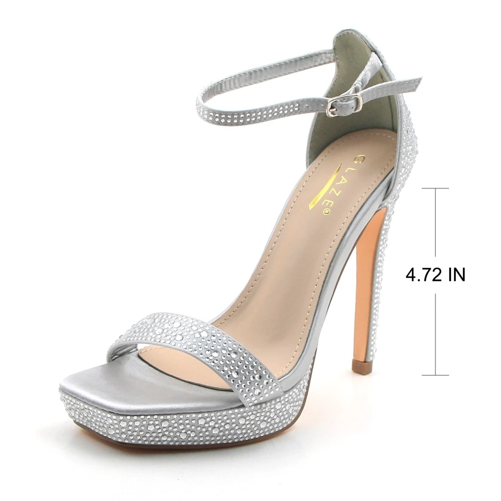 Women's Rhinestone Platform Sandals Ankle Strap Stiletto 4.7 Inch High Heel