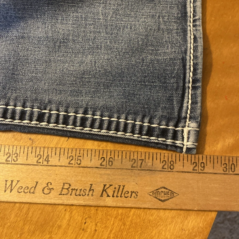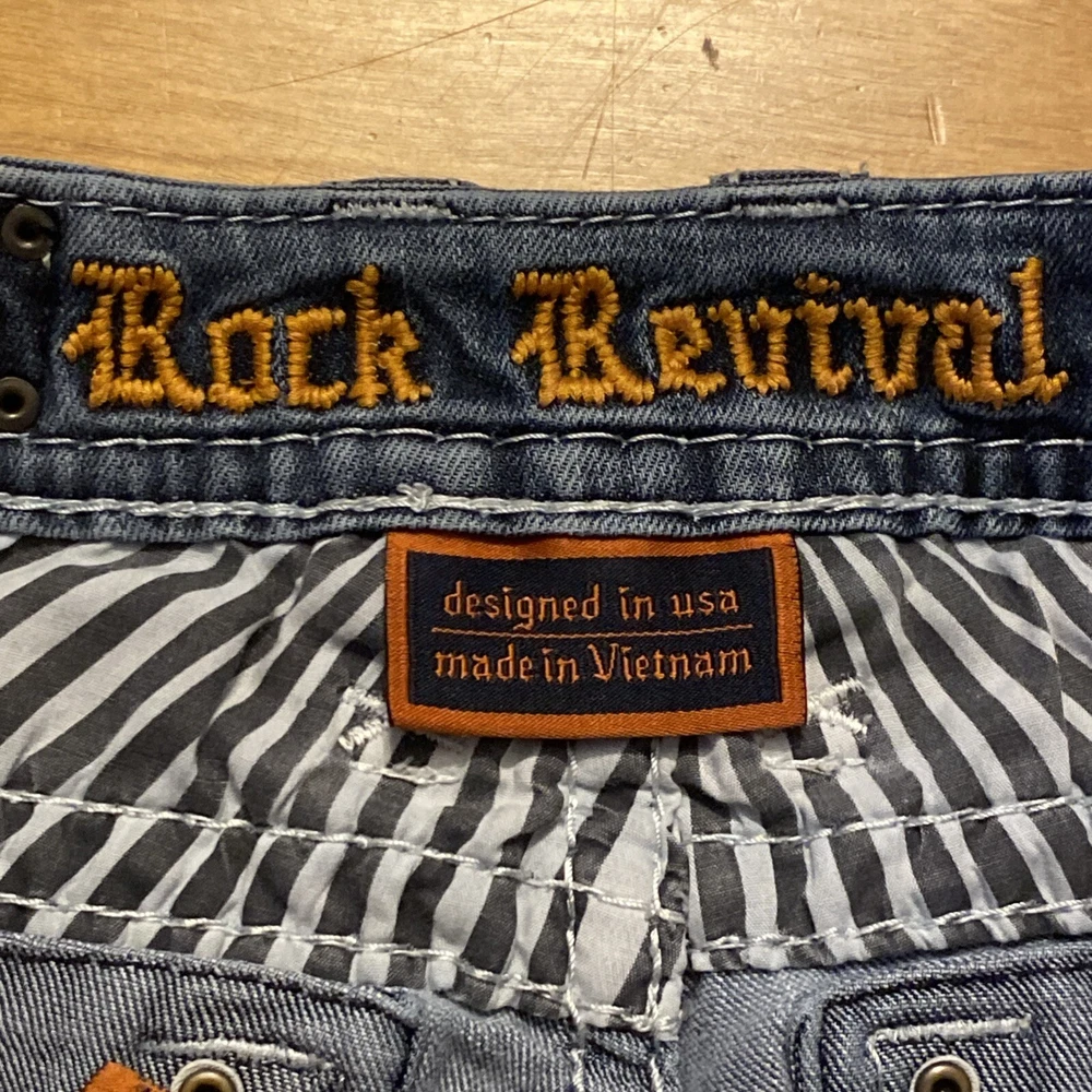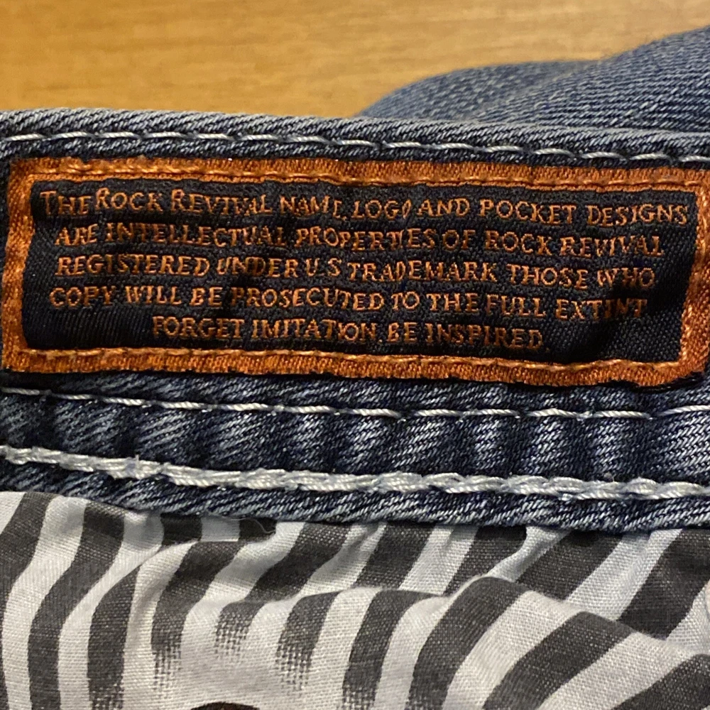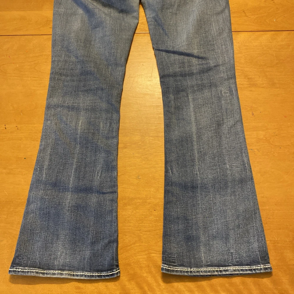 Elevate your denim game with these stunning Rock Revival jeans in size 28. The Betty Bootcut style features a flattering mid-rise fit with a zip and button closure. The jeans are made of a comfortable blend of polyester, viscose, cotton, and elastane that provides a stretchy fit with pockets for added convenience. These are pre owned jeans please look over pictures and measurements