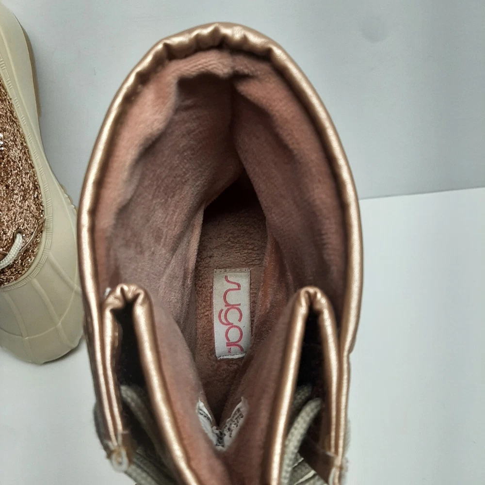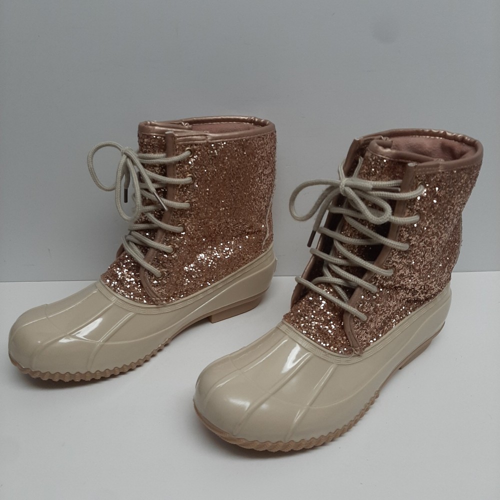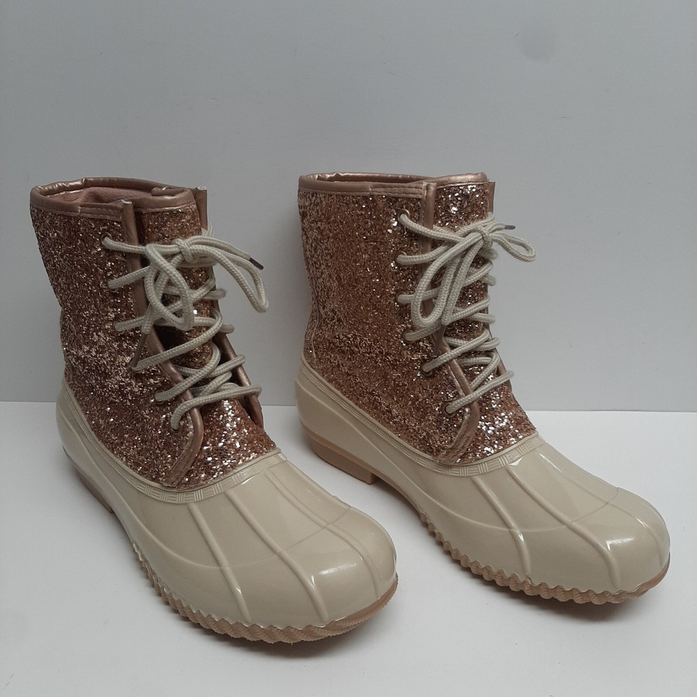 Sugar Women’s Duck Boots Rose Gold Glitter/ Off White 7M Preowned. In great conditions.