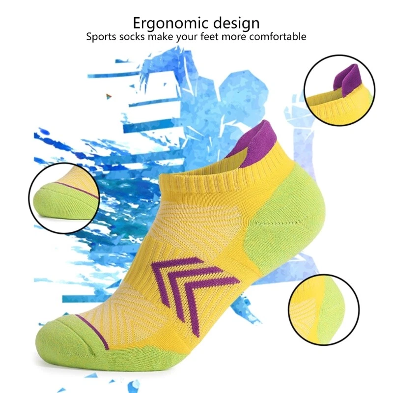 Womens Running Socks Cushioned Sports Socks Ankle Socks for Walking Cycling Features: Ankle running socks for women, soft terry cushioning is adopted for full soles. The heel tab protect the heel from scratches. Not only increases the softness and durability of the sports socks, but also reduces the impact on the knee during exercise. cotton, it has excellent comfort and Cushioned trainer socks can fit your feet perfectly and keep you comfortable all day long. The low cut ankle sports socks is designed with mesh, which has good breathability. This breathable ankle socks can keep your feet dry all day long, they are for spring, summer and autumn. The ladies trainer socks are designed with good arches support, which conform to the ergonomic. Reduce the pressure on your arch. These trainer socks are suitable for various occasion, such as gym, hiking, running, walking, cycling and rock climbing, and can effectively protect your feet. Specifications: Cotton Color: Red; Blue; Yellow; Orange; Purpler; Rose Red; Type: Small; Size: Mixed Size Weight: Approx. 66g Package Includes: 1 Pair Ankle Running Socks note: 1.Please allow 0-1cm error due to manual measurement. make sure you do not mind before you bid. 2.Due to the difference between different monitors, the picture may not reflect the actual color of the item. Thank you