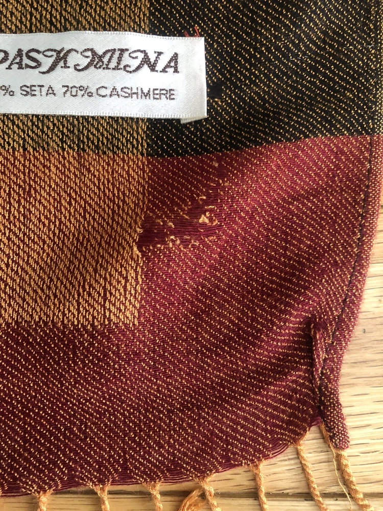 The scarf has a couple of snags and some wear, see photo I am only able to make shipments via USPS on Saturdays. If a faster delivery is needed, please let me know, and we can explore options with UPS or FedEx. Thank you for your understanding.