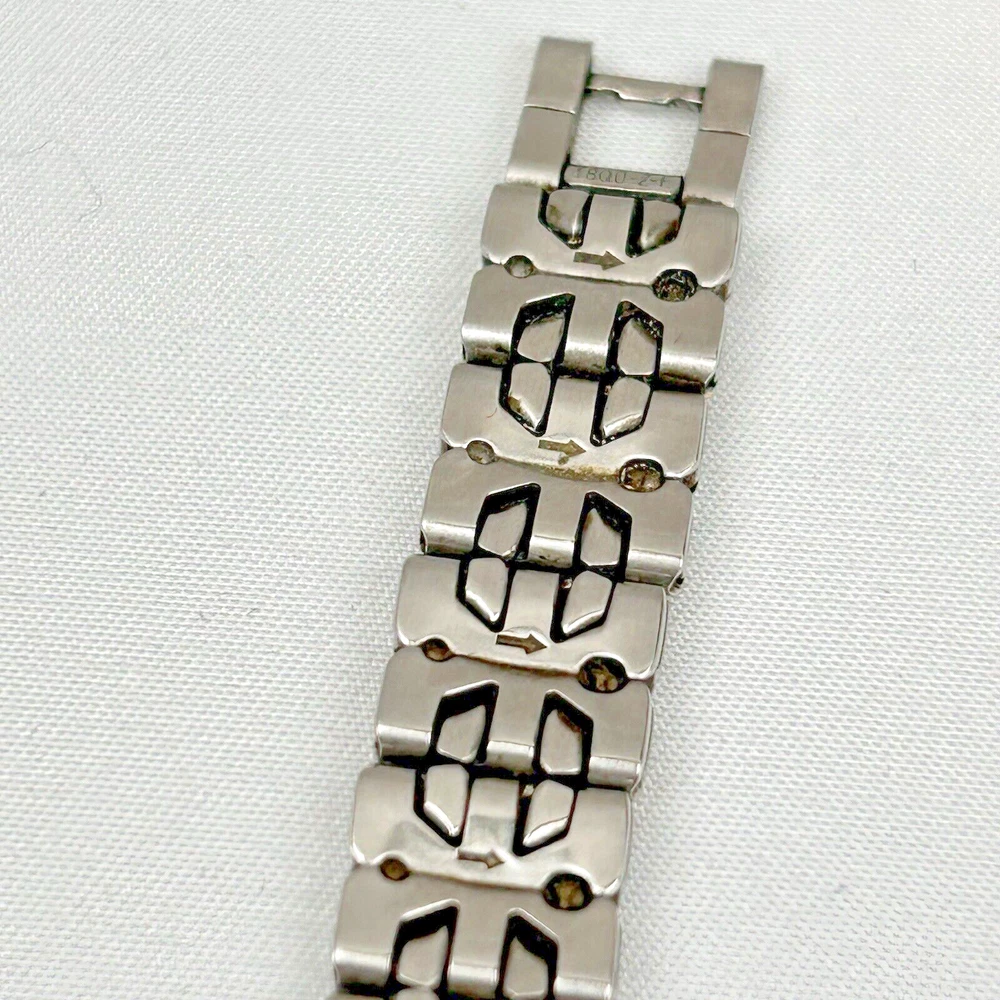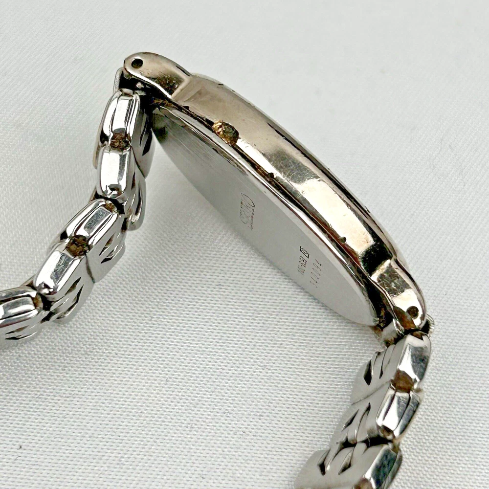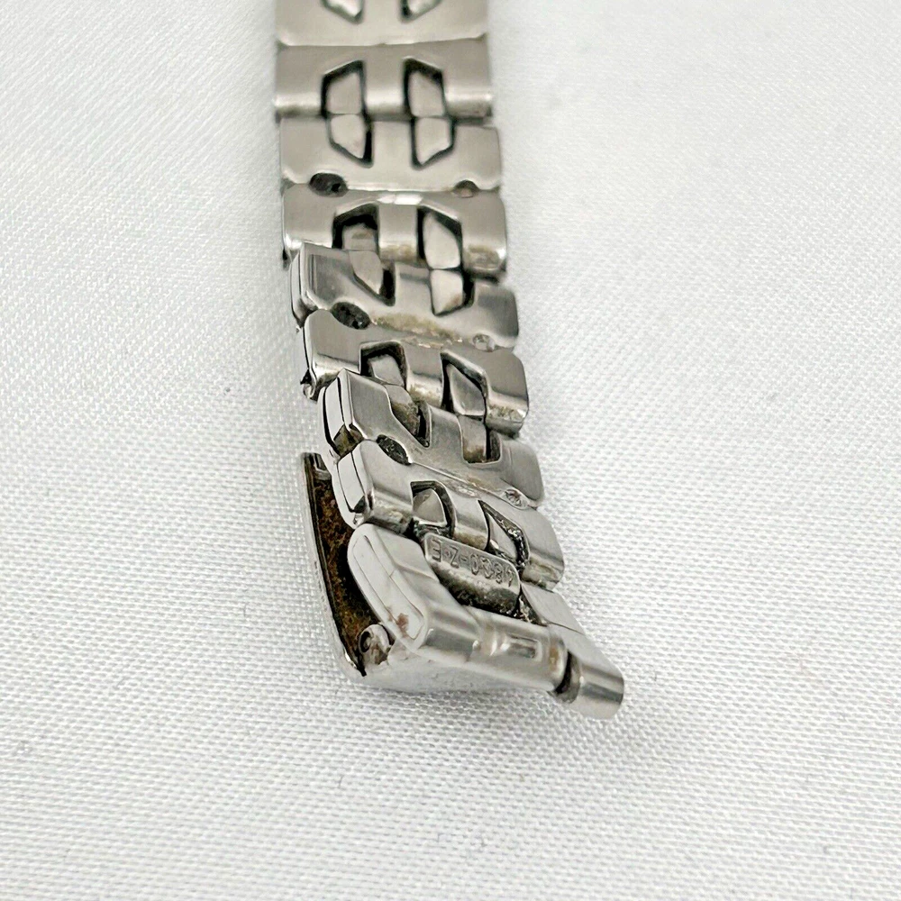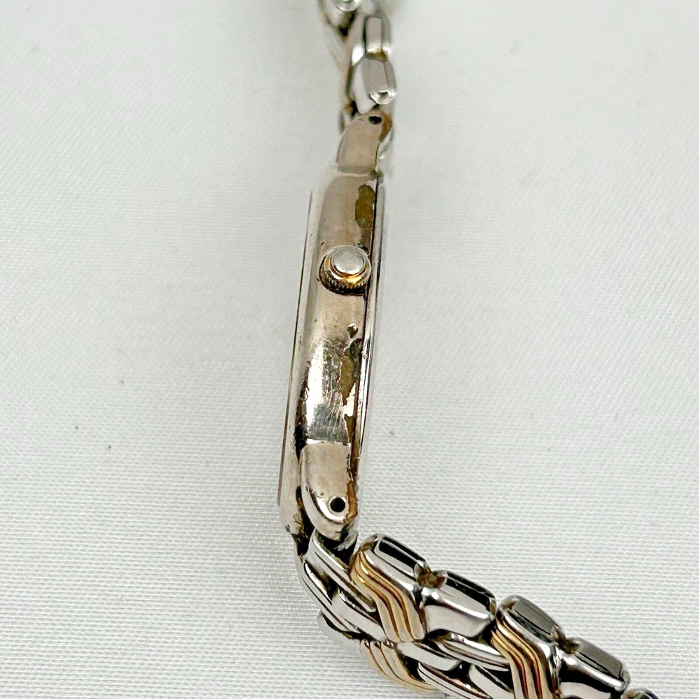 This vintage Women's Seiko Wristwatch has an elegant oval face with a white dial and gold and silver 7.5" chain band. Featuring a 20mm case size and quartz movement, this analog watch is a timeless accessory for any occasion. It is in excellent working condition with a new battery. There are some minor surface scratches and wear due to age, but it still shows very nicely. Add a touch of class to your look with this classic Seiko watch.