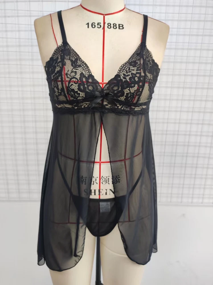 Features: 100% brand new The pajamas for women features v neck camisole top with adjustable spaghetti straps. This sleeveless top and shorts set give u a pretty and cute look The sleepwear set is perfect choice for Wedding Night, Honeymoon, Valentine's Day, Anniversary, Bedroom, Bathroom or every hot night,loungewear,sleepwear etc. Featuring lace patchwork, adjustable spaghetti strap. Made of polyester material, light and soft Makes you feel comfortable when wearing Perfect for your special moment with your love Material: Lace Colors: Black Size: S-XL Package include: 1 Set Women sexy Sleepdress or 1 x Sexy Thong