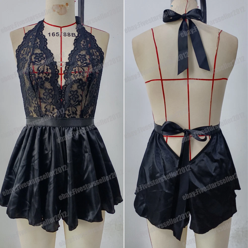 About this item Material: Polyester Features: Sleeveless, tie neck, backless, plunging neck, sheer lace, one piece, plain color This bodysuit lingerie is made of lightweight and breathable fabric, smooth to skin, comfortable for wearing Nice choice for wedding night, honeymoon, Valentine's Day, nightwear, sleepwear, anniversary and so on Please refer to the Product Measurement in image before ordering